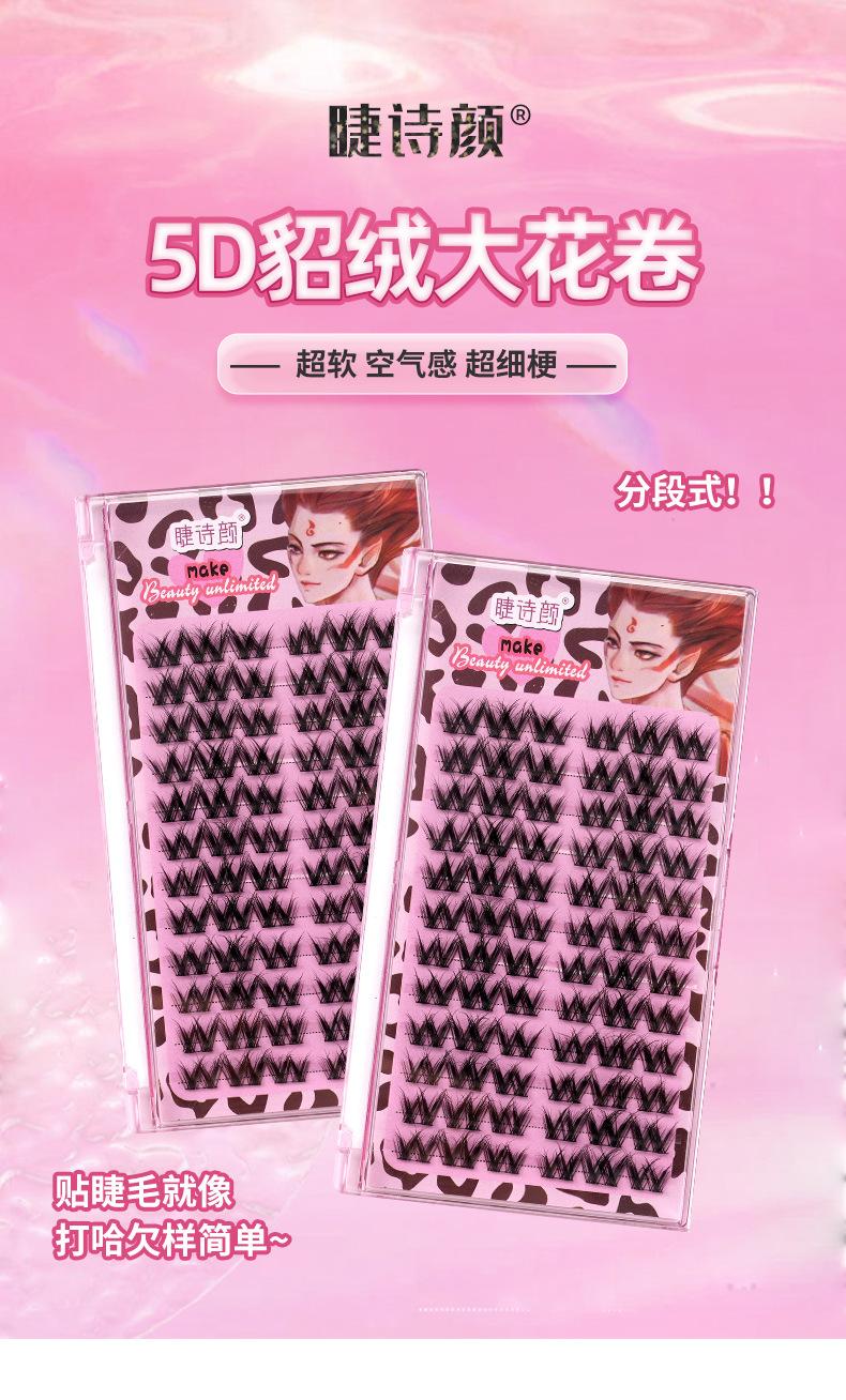 Pestañas postizas Shiyan 5D visón terciopelo flor grande rollo racimo individual dividido desordenadas tallo negro autoadhesivas gruesas cruzadas