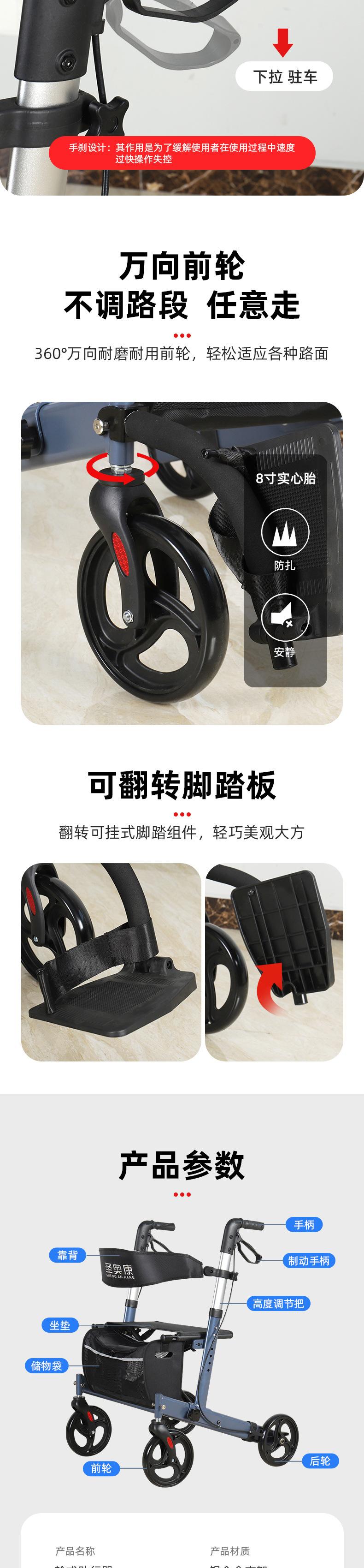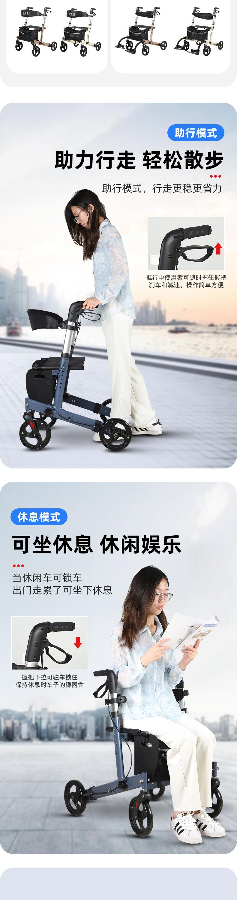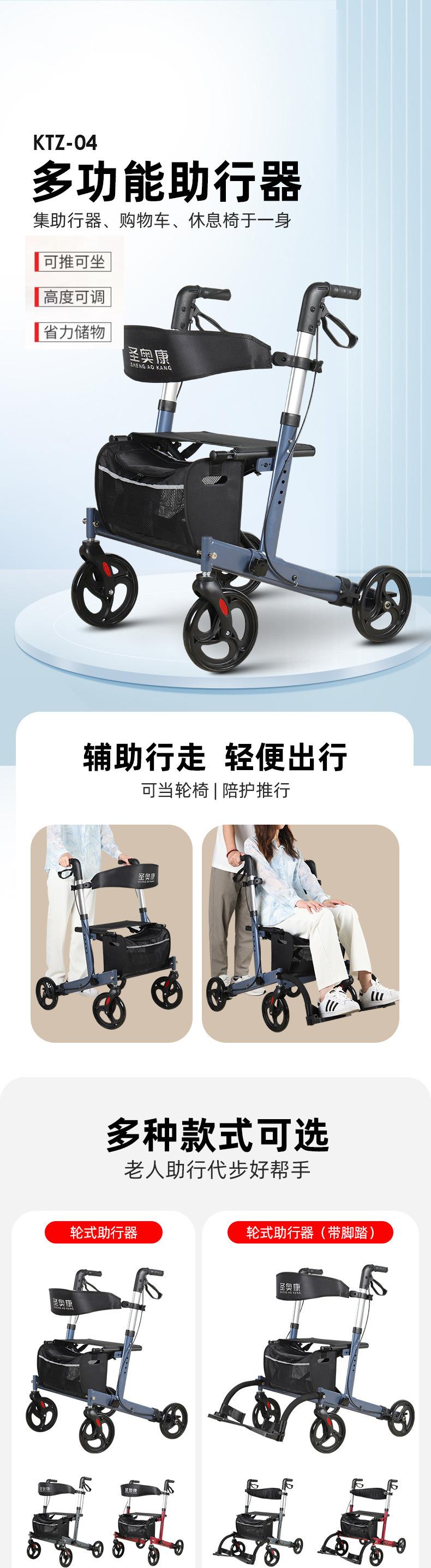 Andador Auxiliar de Rehabilitación para Ancianos, Carrito Multifuncional de Cuatro Ruedas que se Puede Empujar y Sentar, Andador Bastón con Ruedas