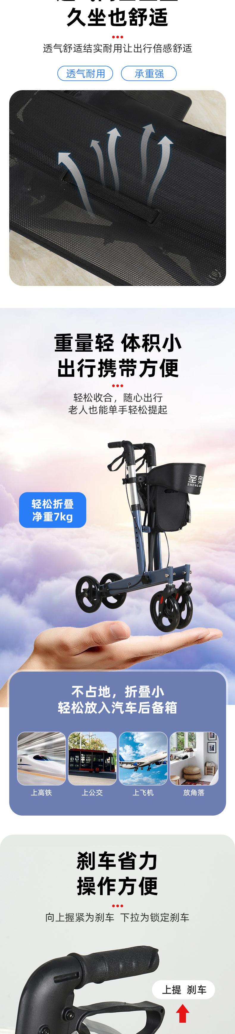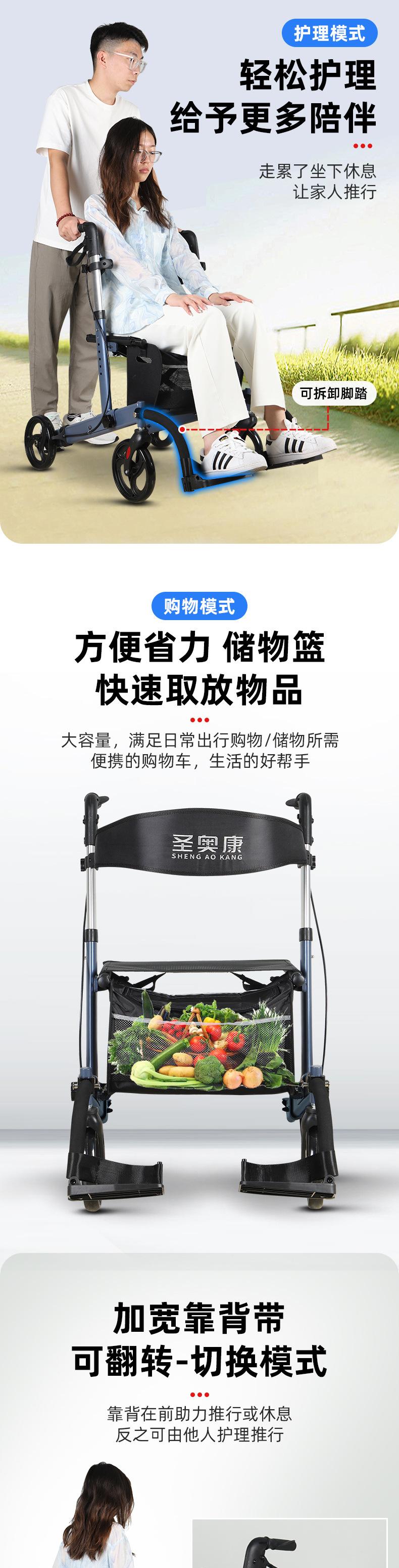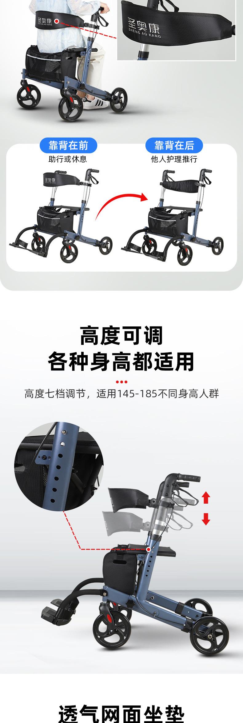 Andador Auxiliar de Rehabilitación para Ancianos, Carrito Multifuncional de Cuatro Ruedas que se Puede Empujar y Sentar, Andador Bastón con Ruedas