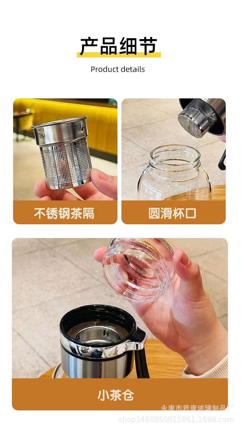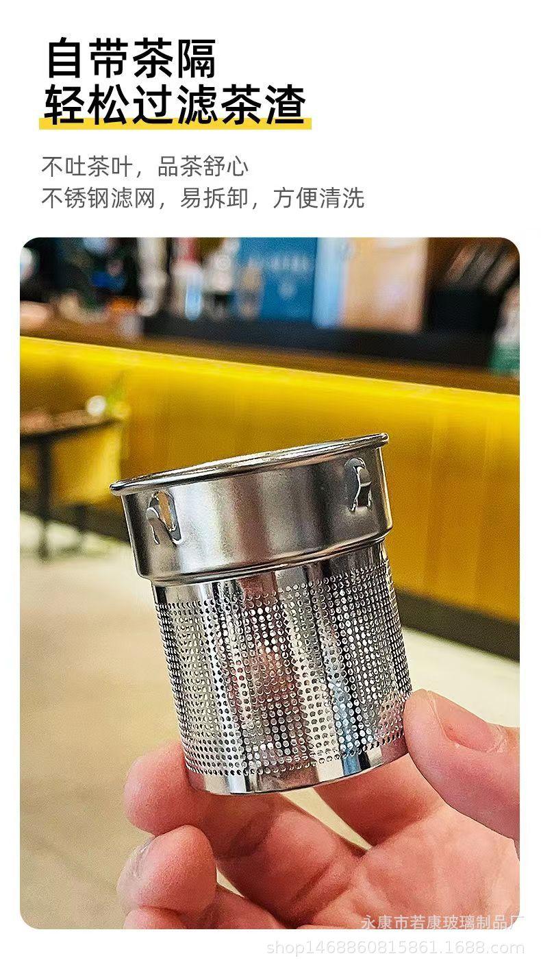 Taza de té de vidrio de una sola capa de gran capacidad, engrosada, resistente a altas temperaturas, taza de agua, taza para separar el té portátil de celebridad de internet, taza de café