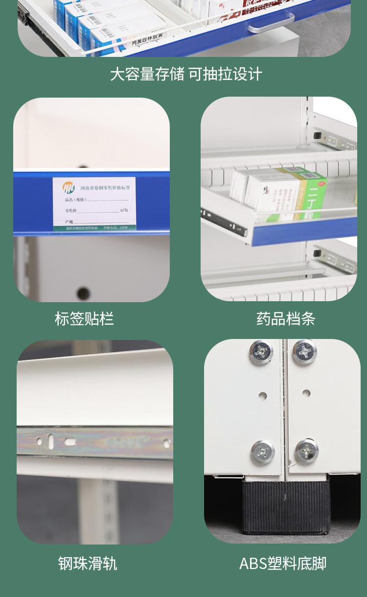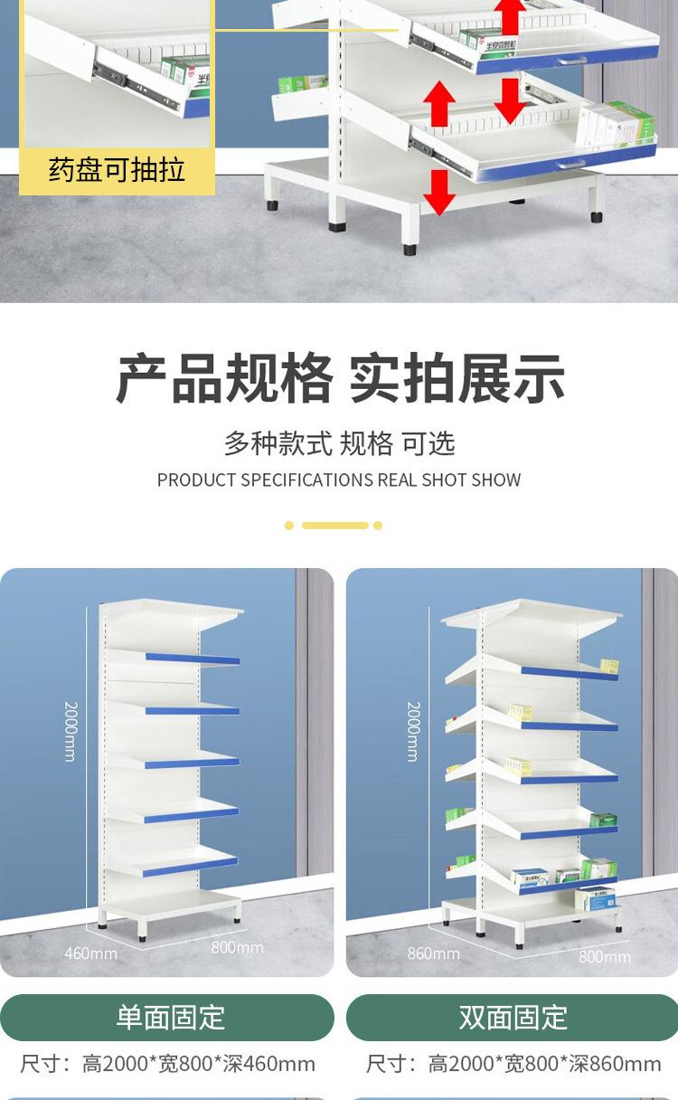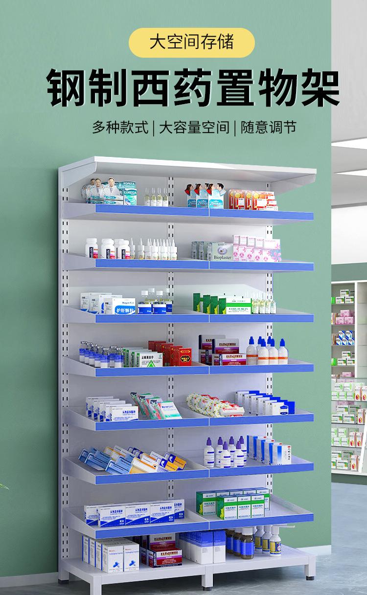 Estante para medicamentos occidentales, estante para medicamentos de hospital, estante para medicamentos de farmacia, estante para medicamentos de acero de doble cara abierto, estante para farmacia con ajuste de tracción de múltiples capas