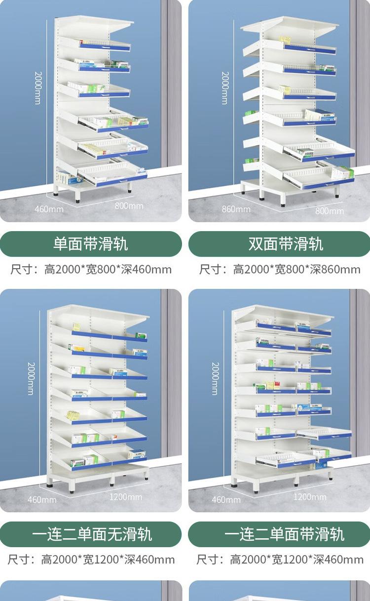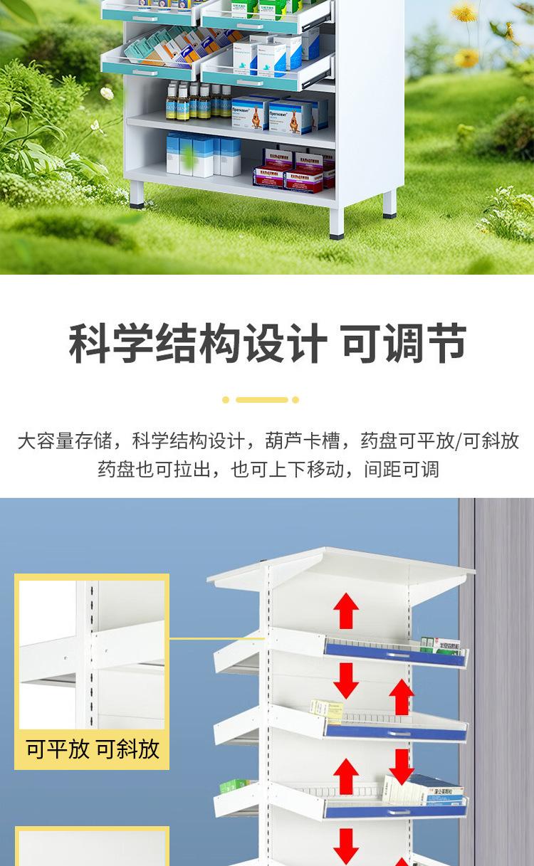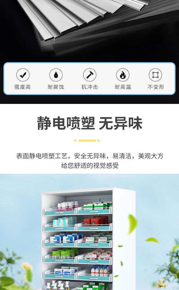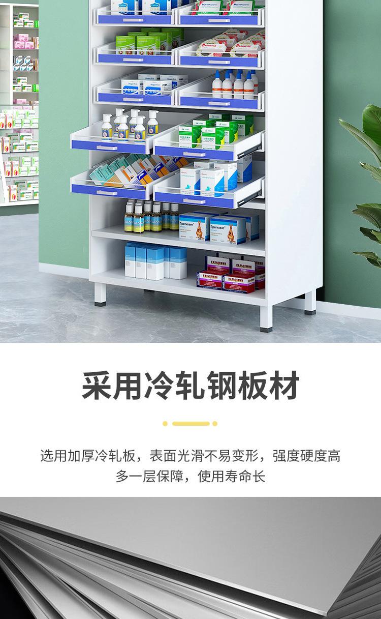 Estante para medicamentos occidentales, estante para medicamentos de hospital, estante para medicamentos de farmacia, estante para medicamentos de acero de doble cara abierto, estante para farmacia con ajuste de tracción de múltiples capas