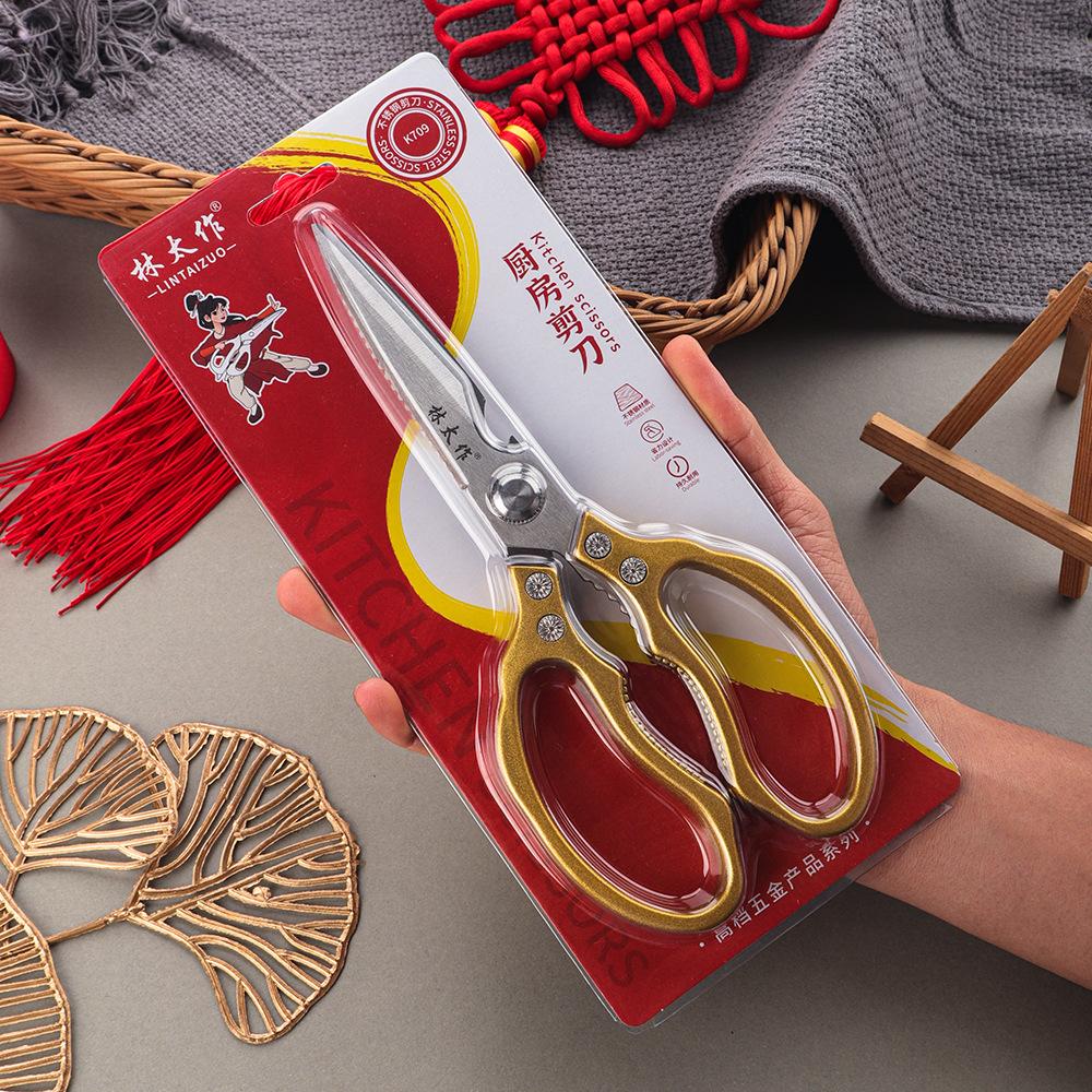 Marca Lin Taizuo Super Elegante Tarjeta Dura Personalizada Tijeras de Cocina Multifuncionales Tijeras para Huesos de Pollo Tijeras Domésticas Potentes