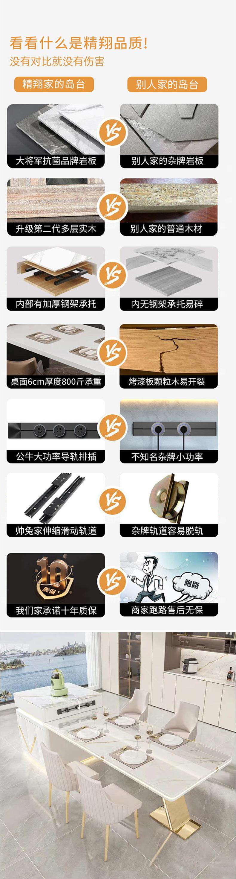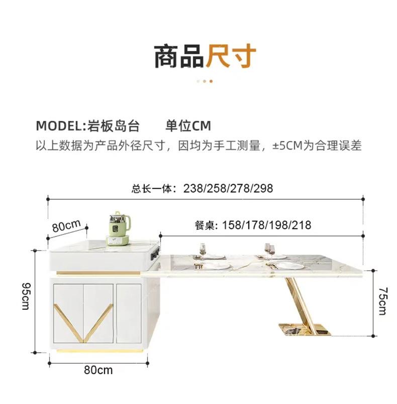 2024 Nueva Mesa Isla con Placa de Roca, Guía Integrada Retráctil de Metal con Pie en V, Consola Barra de Té