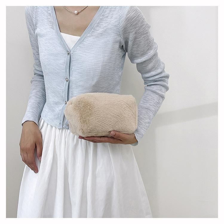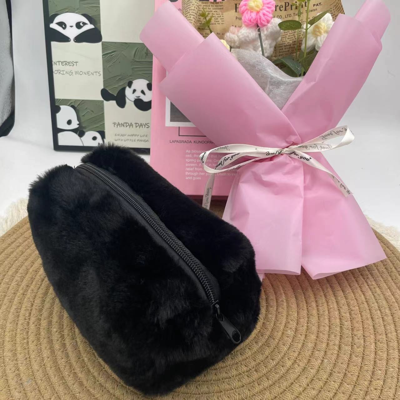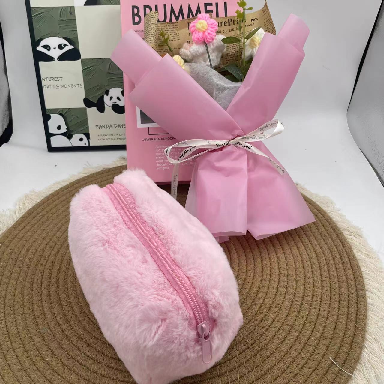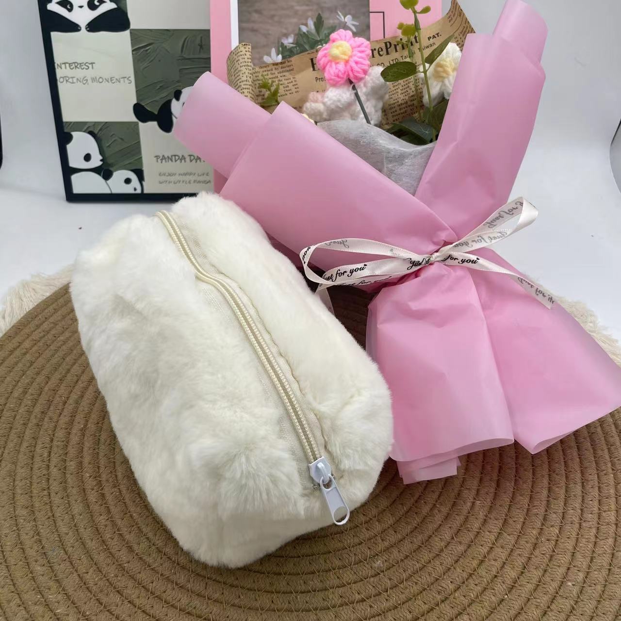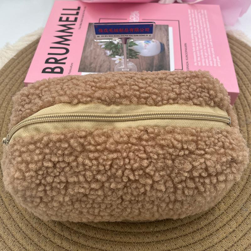Bolsa de cosméticos de felpa de fábrica en stock Bolsa de almacenamiento de gran capacidad de color macarrón Bolsa de almacenamiento de alto valor de color