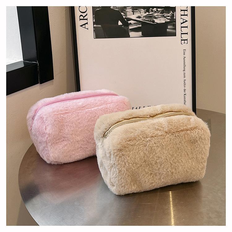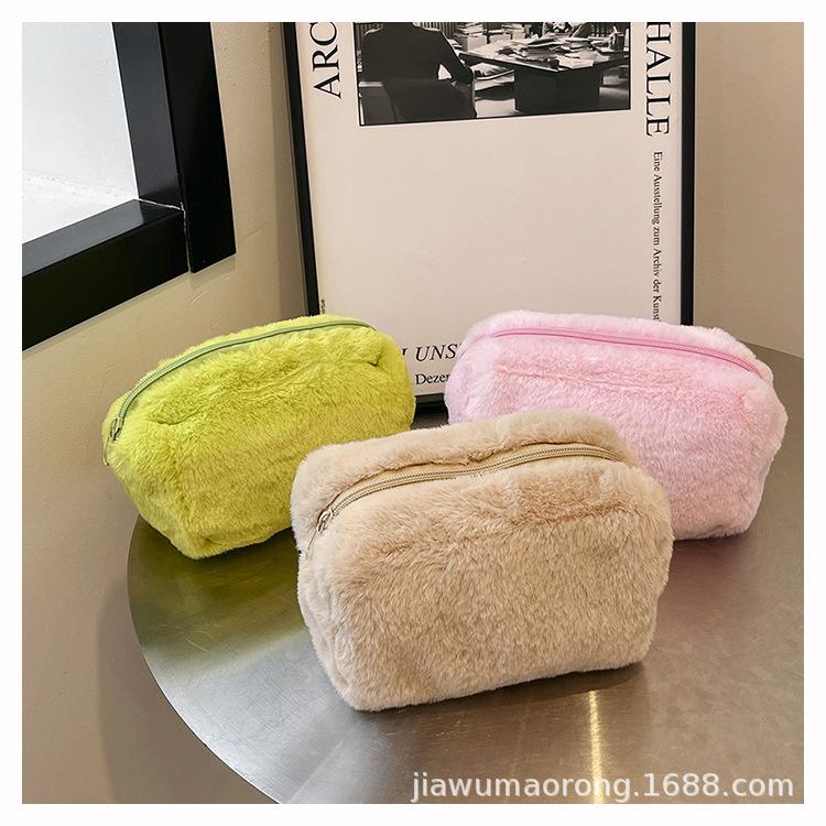Compra Bolsa de cosméticos de felpa de fábrica en stock Bolsa de almacenamiento de gran capacidad de color macarrón Bolsa de almacenamiento de alto valor de color al por mayor en Joom.pro