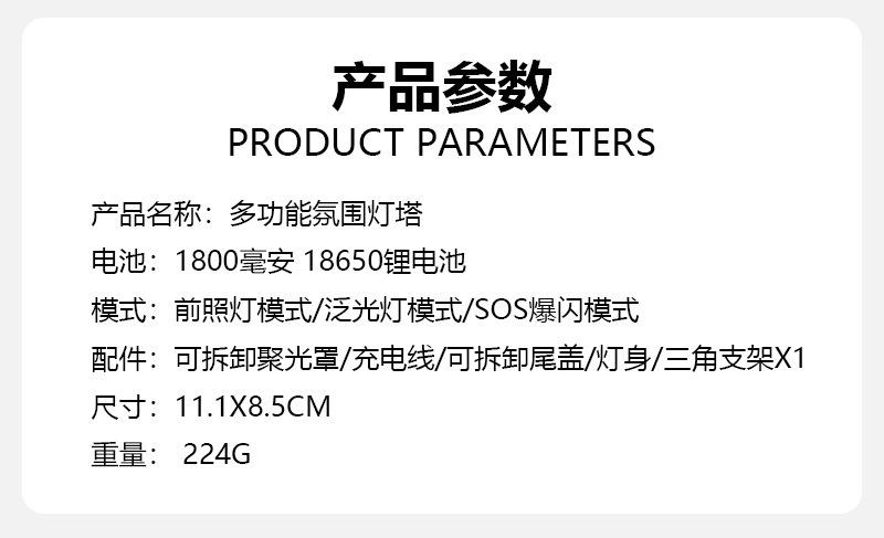 Luz Multifuncional de Estilo Camping Transfronteriza Larga Duración Luz de Estilo Camping Recargable Luz de Advertencia Tipo-C Luz para Tienda Luz Igt