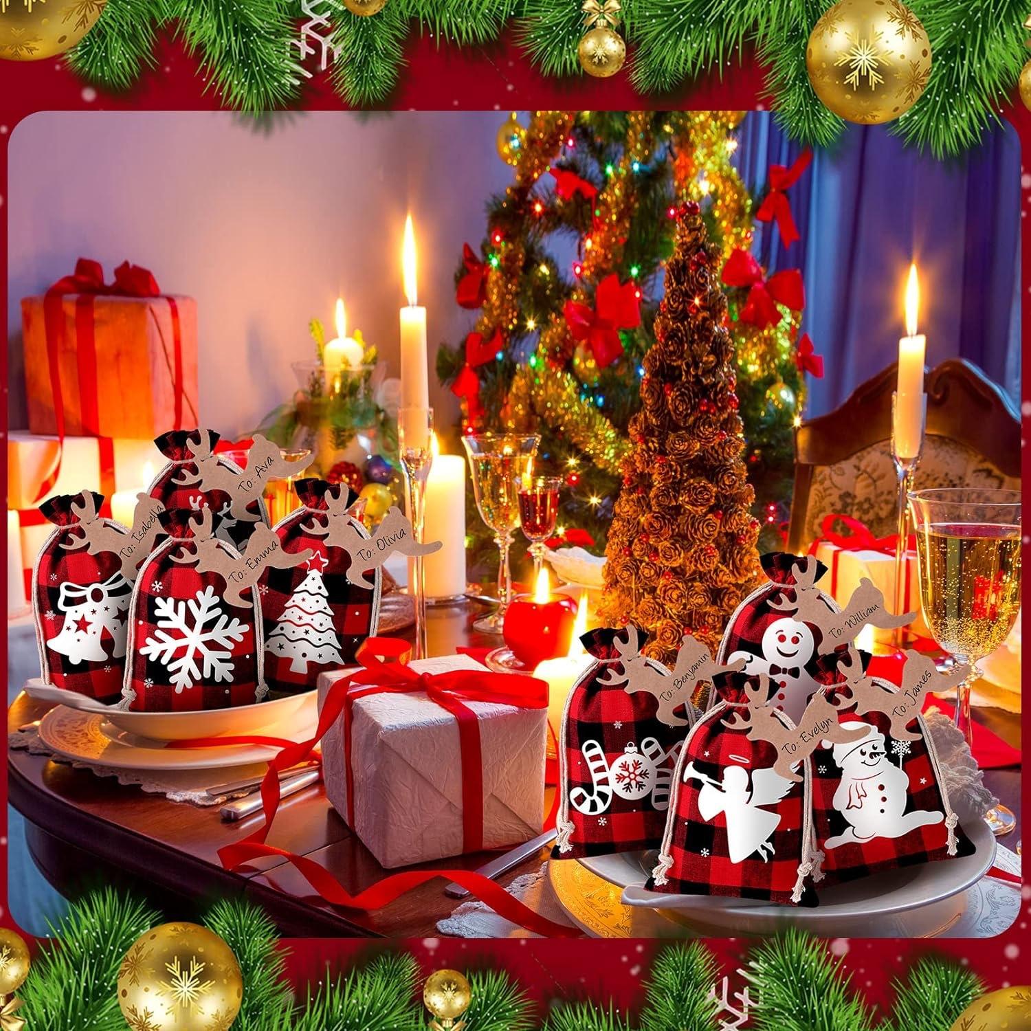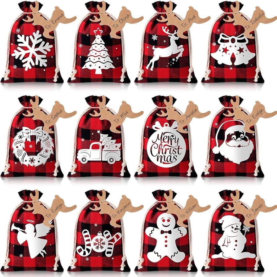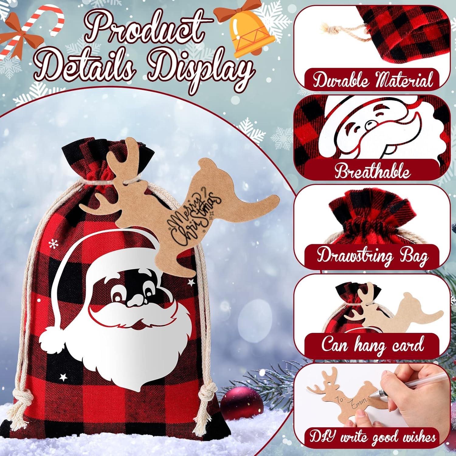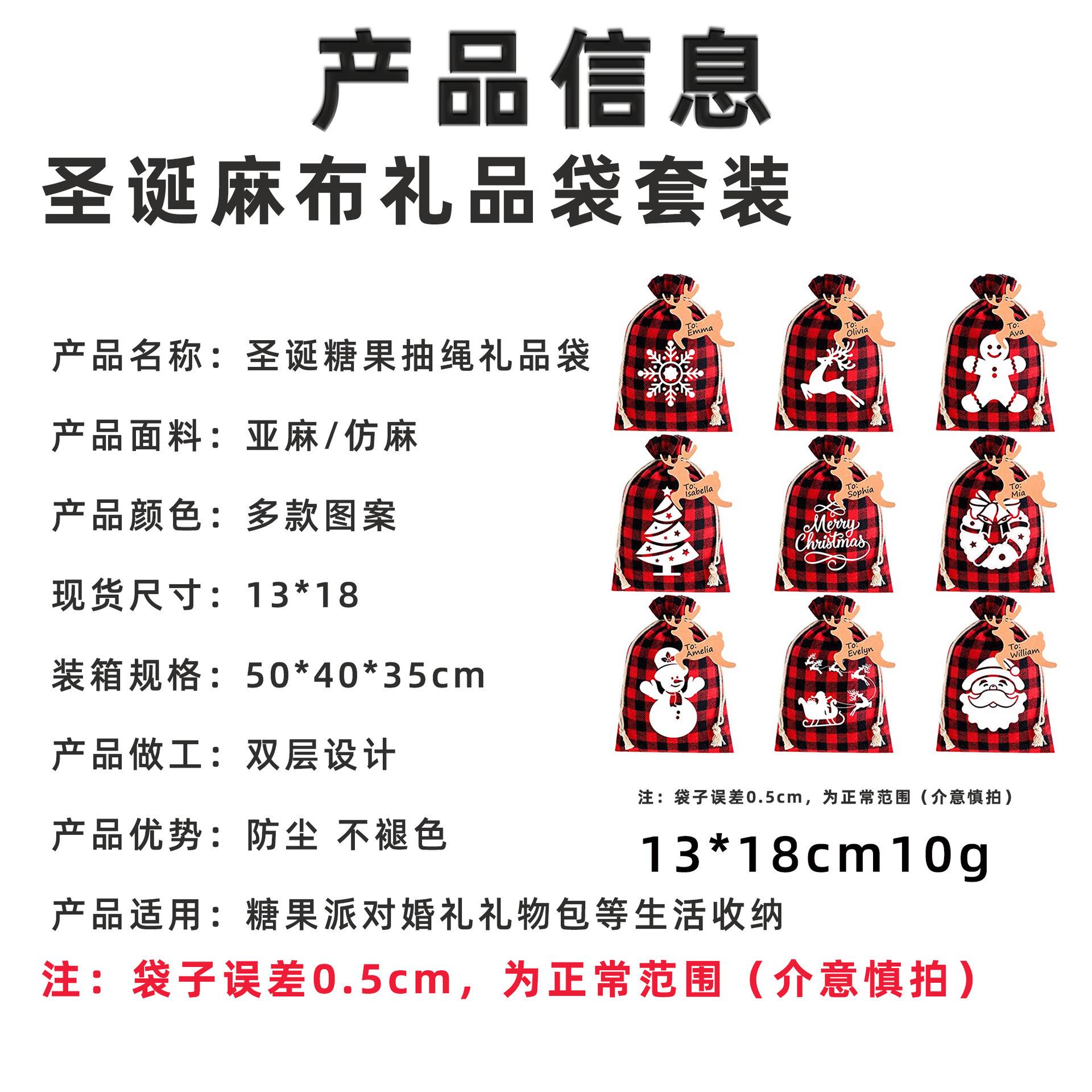 Set de Bolsas de Regalo de Algodón a Cuadros Navideños Transfronterizo con Cordón para Almacenamiento, Bolsa de Embalaje con Cordón, Bolsa de Cordón Navideña