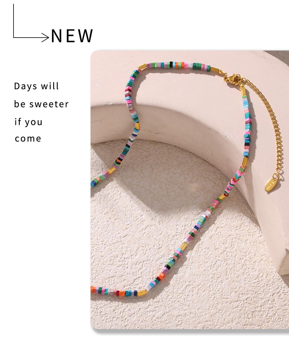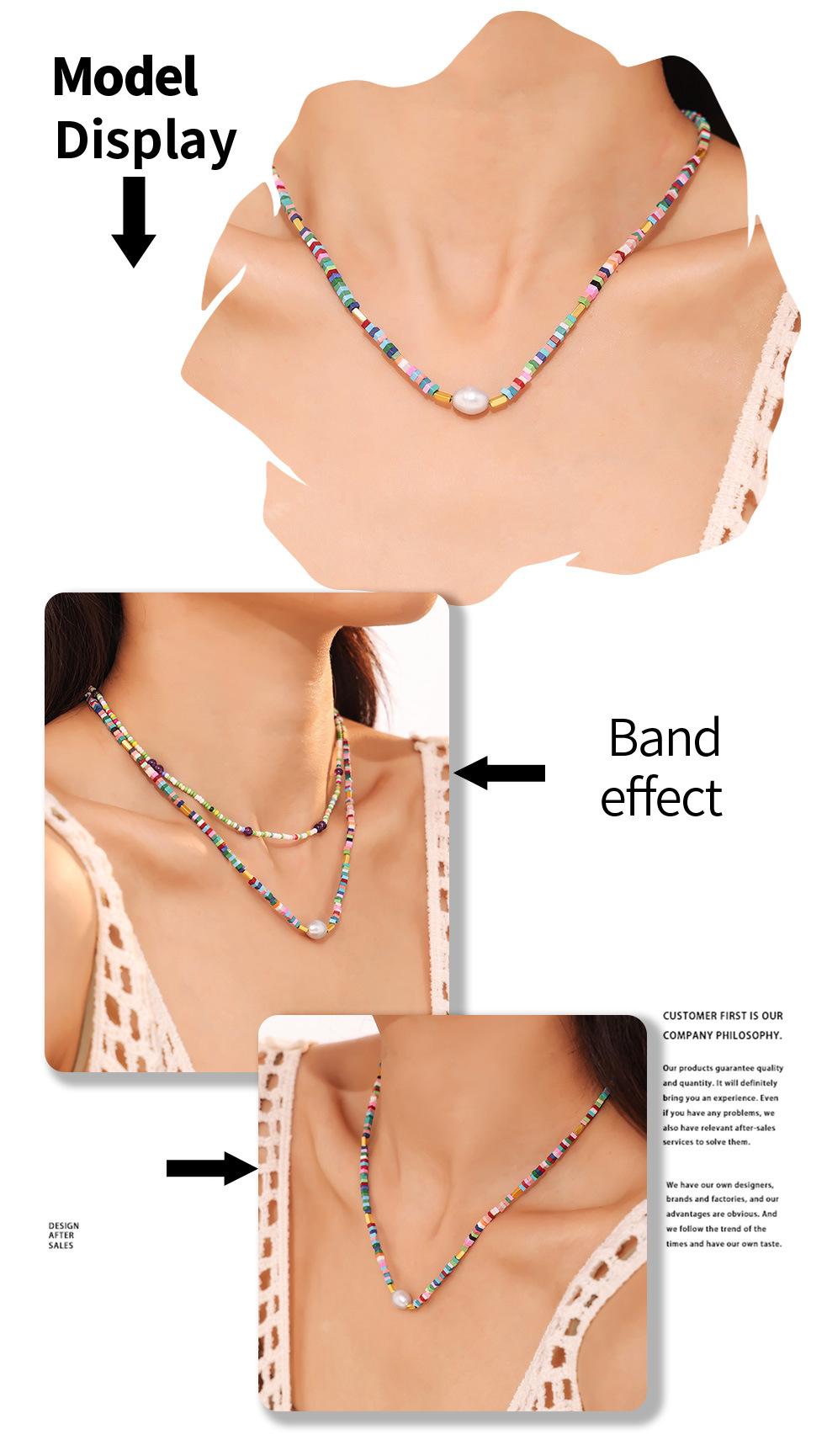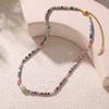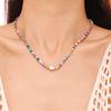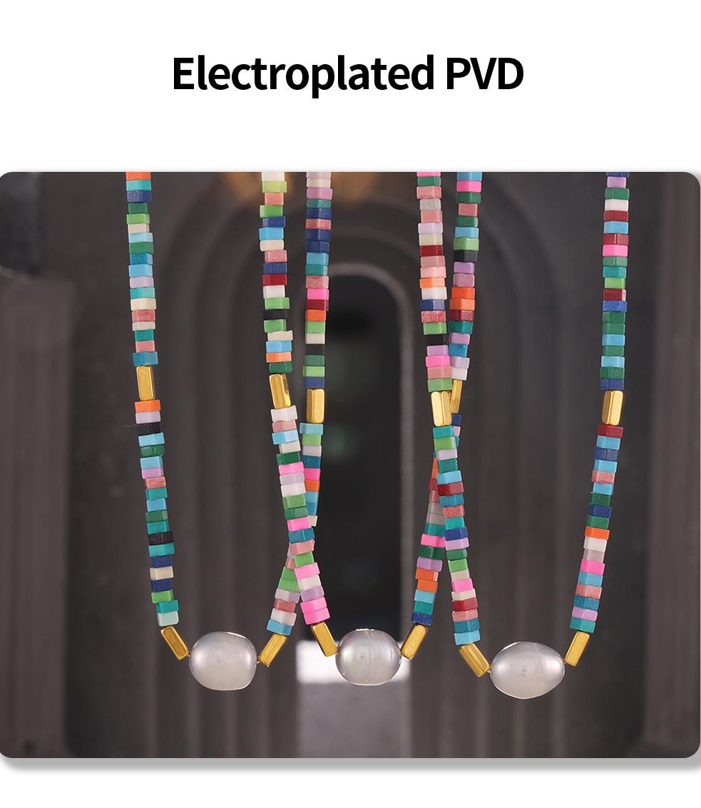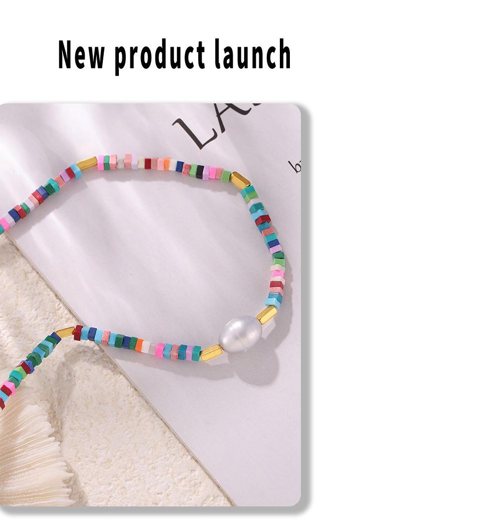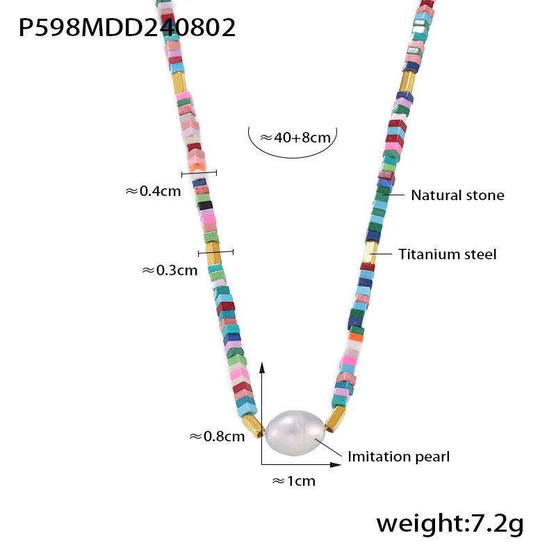 Nuevo colgante geométrico de perla de imitación estilo Hepburn con cadena de acero de titanio y piedra natural de color con corte cuadrado.