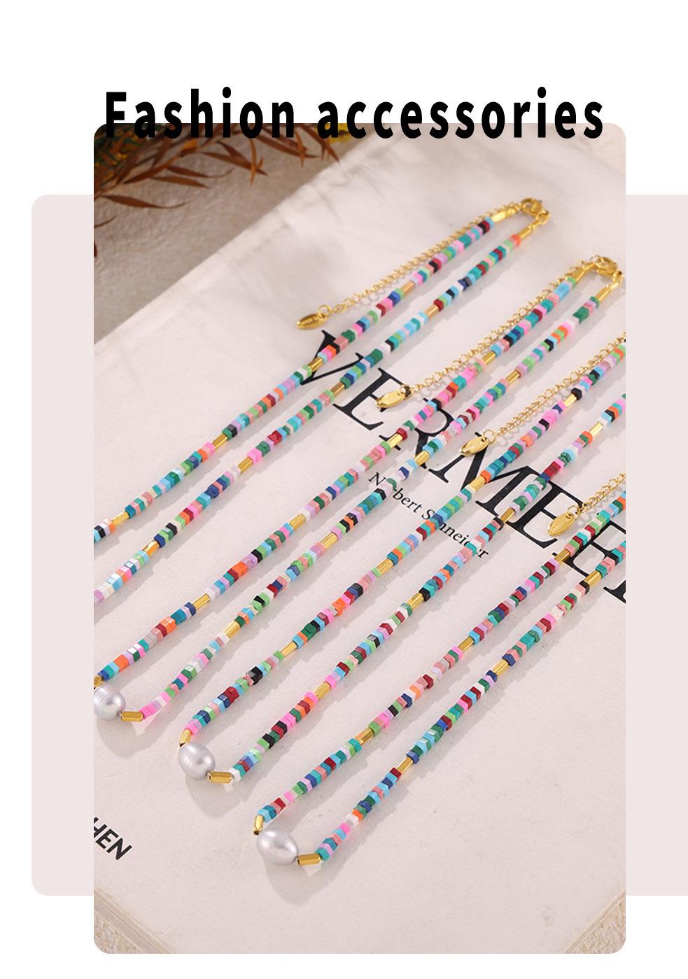 Compra Nuevo colgante geométrico de perla de imitación estilo Hepburn con cadena de acero de titanio y piedra natural de color con corte cuadrado. al por mayor en Joom.pro