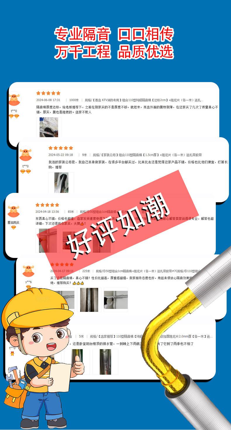 Bolsa de algodón para aislamiento acústico de tuberías de alcantarillado, algodón autoadhesivo para aislamiento acústico de tuberías de alcantarillado, lámina de amortiguación de algodón para aislamiento acústico de tuberías de alcantarillado, venta al por mayor