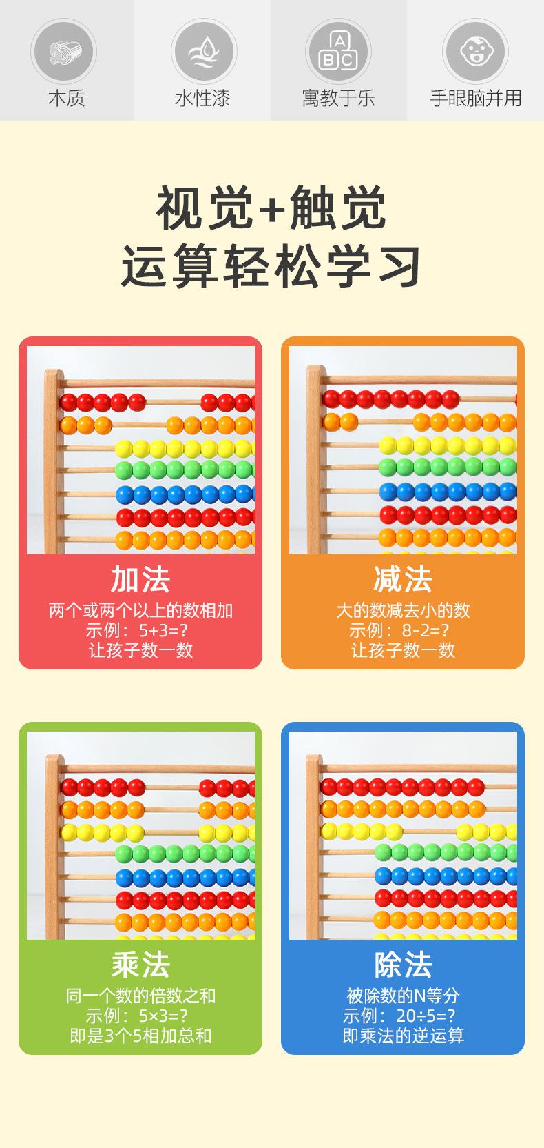 Estante de cálculo matemático de haya Montessori para niños, artefacto de suma y resta, contador de varillas aritméticas, enseñanza de iluminación de primer grado, consciente