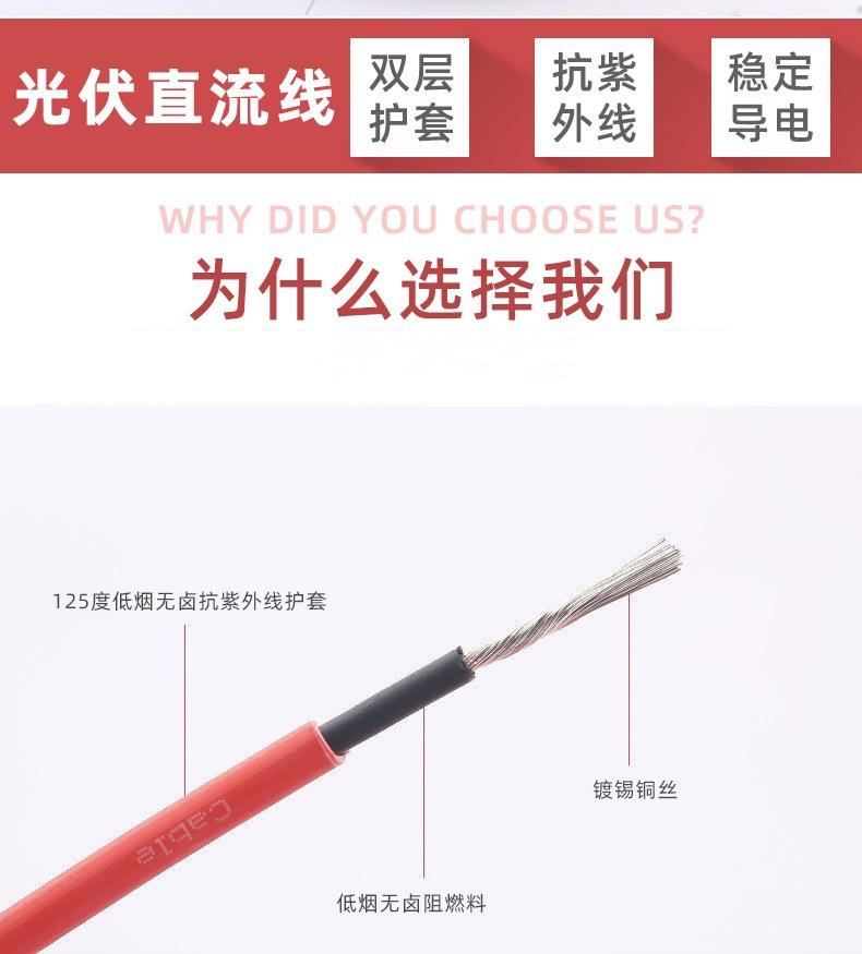 Cable fotovoltaico de CC de 4, 6 y 2,5 mm², cable unipolar de cobre estañado, cable solar fotovoltaico PV1-F.