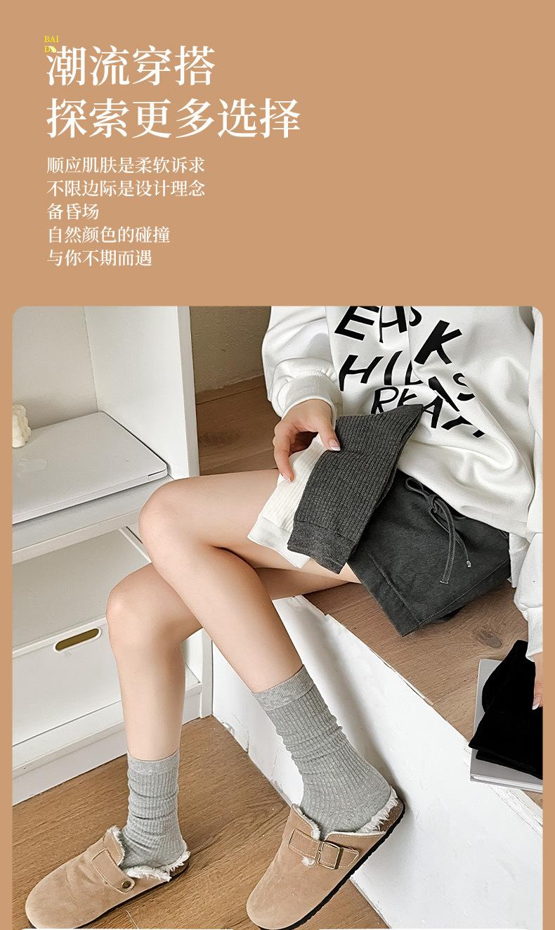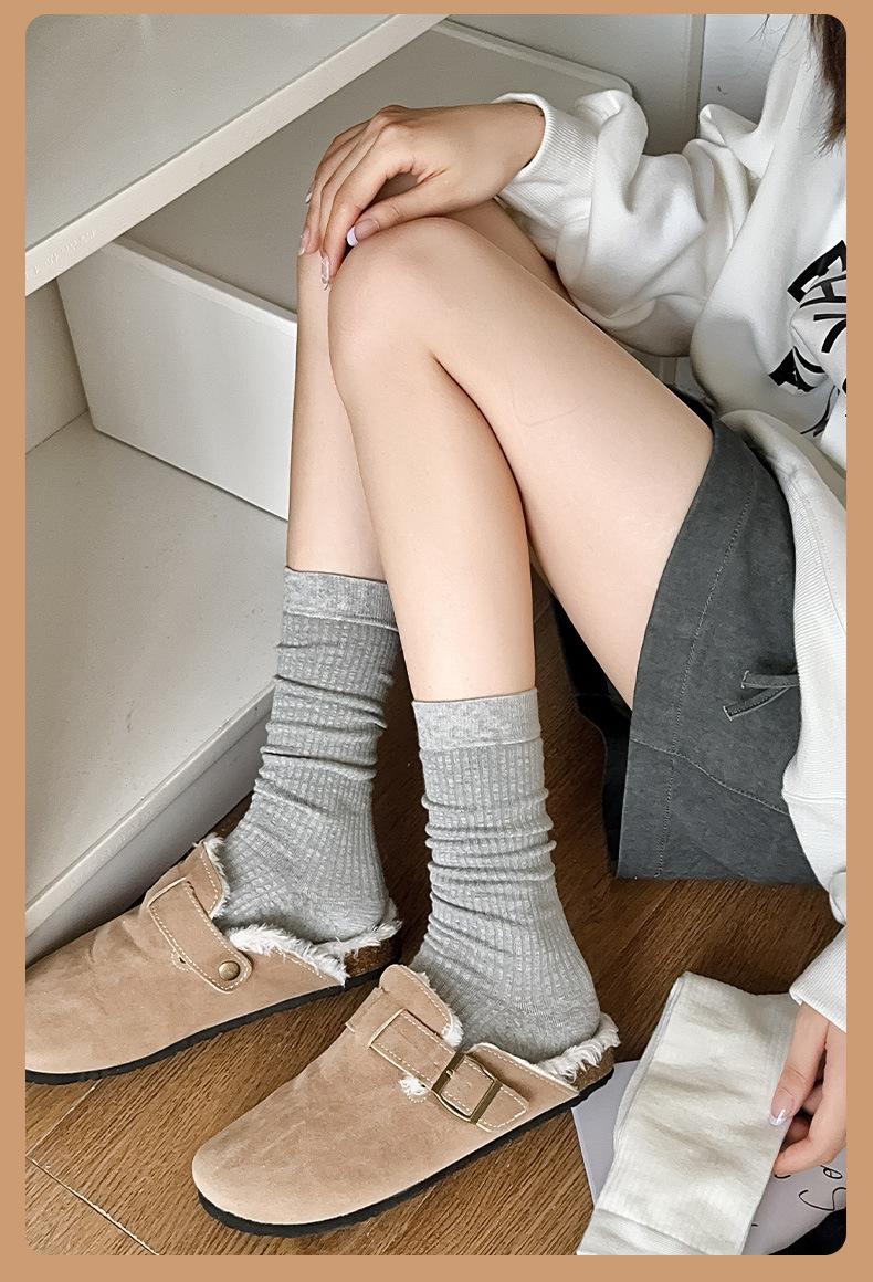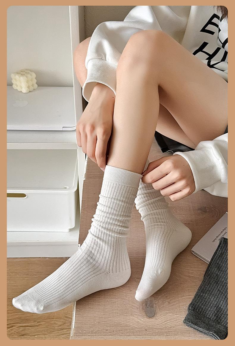 Compra Medias de mujer de otoño e invierno, nuevo estilo, de algodón peinado, transpirables, de color liso, sencillas, japonesas, sin hueso, apiladas. al por mayor en Joom.pro