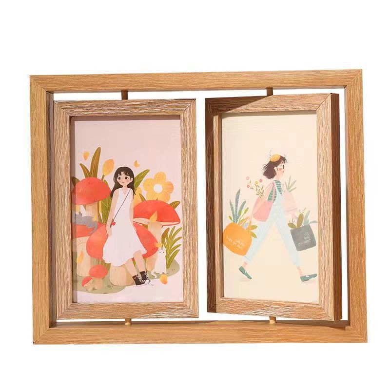 Marco de Fotos de Madera, Creativo, Simple, Marco de Fotos Multiespecificación, Adornos Giratorios de Alta Gama, Adornos de Decoración para el Hogar Se Pueden Personalizar