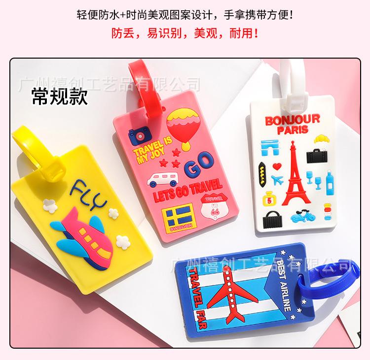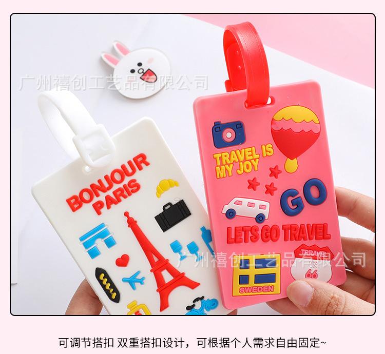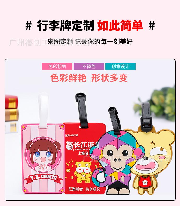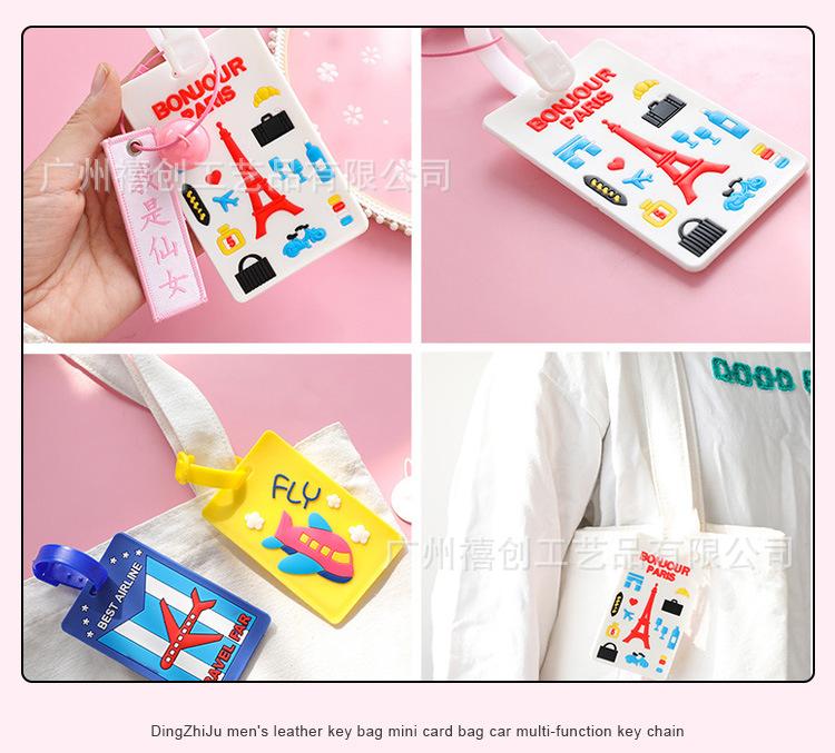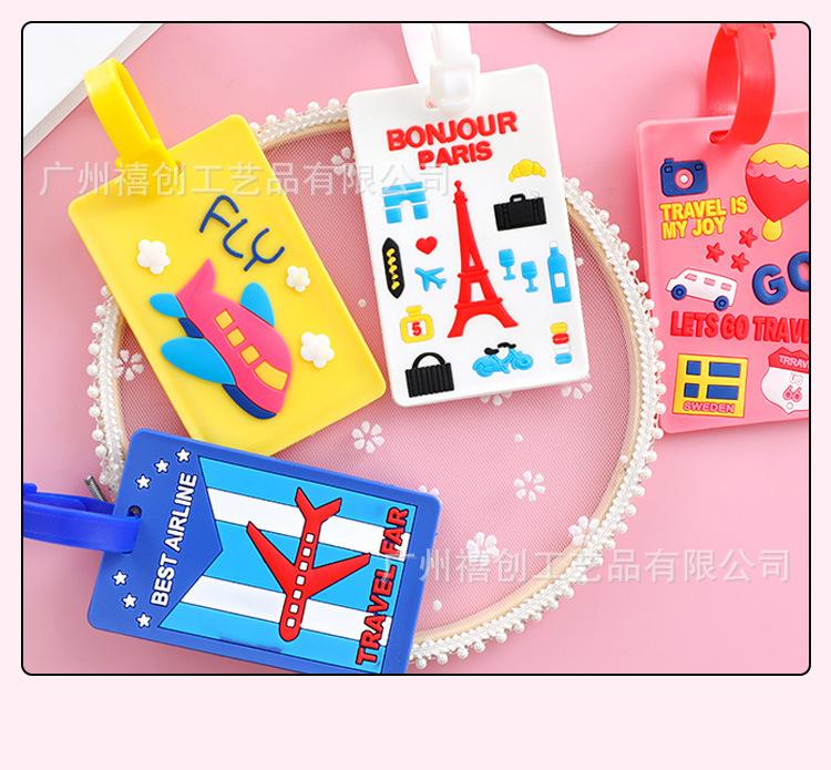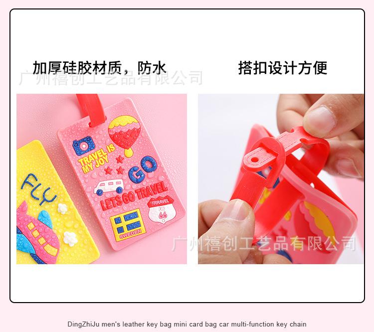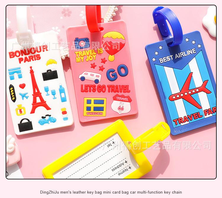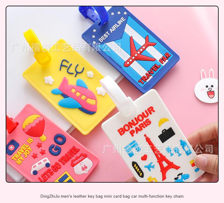 Etiqueta de equipaje de PVC personalizada, etiqueta de goma epoxi, logotipo personalizado, tarjetero de silicona, dibujos animados creativos, tarjeta de embarque de goma suave.