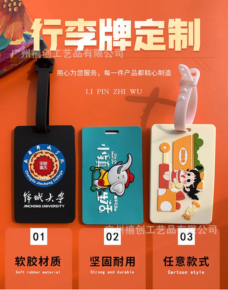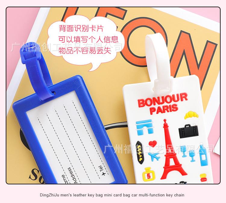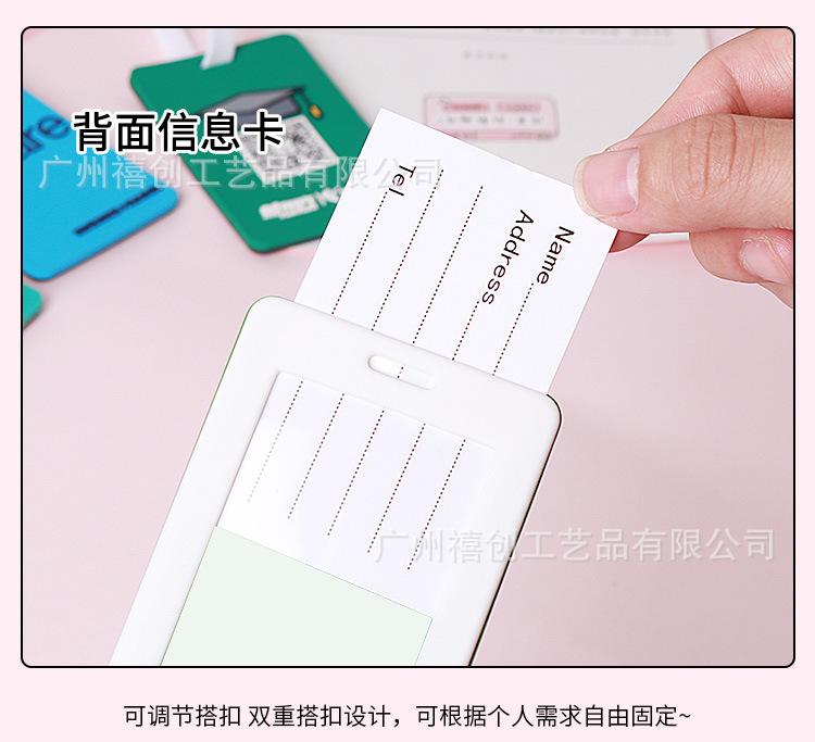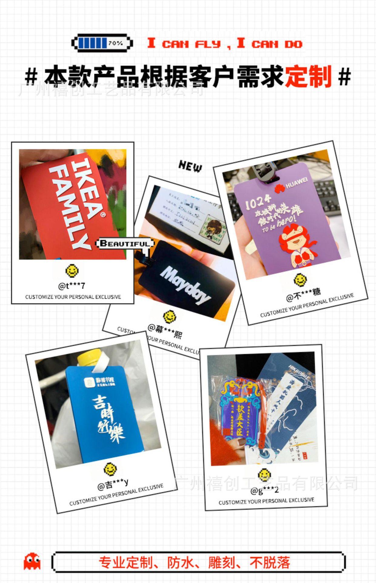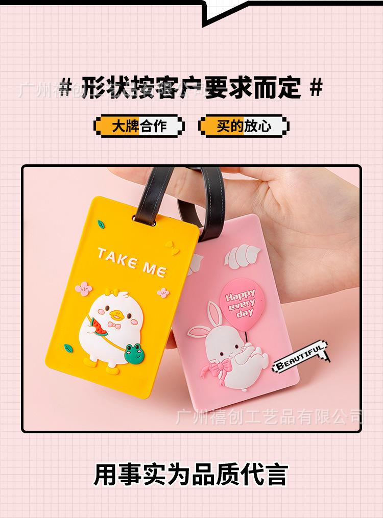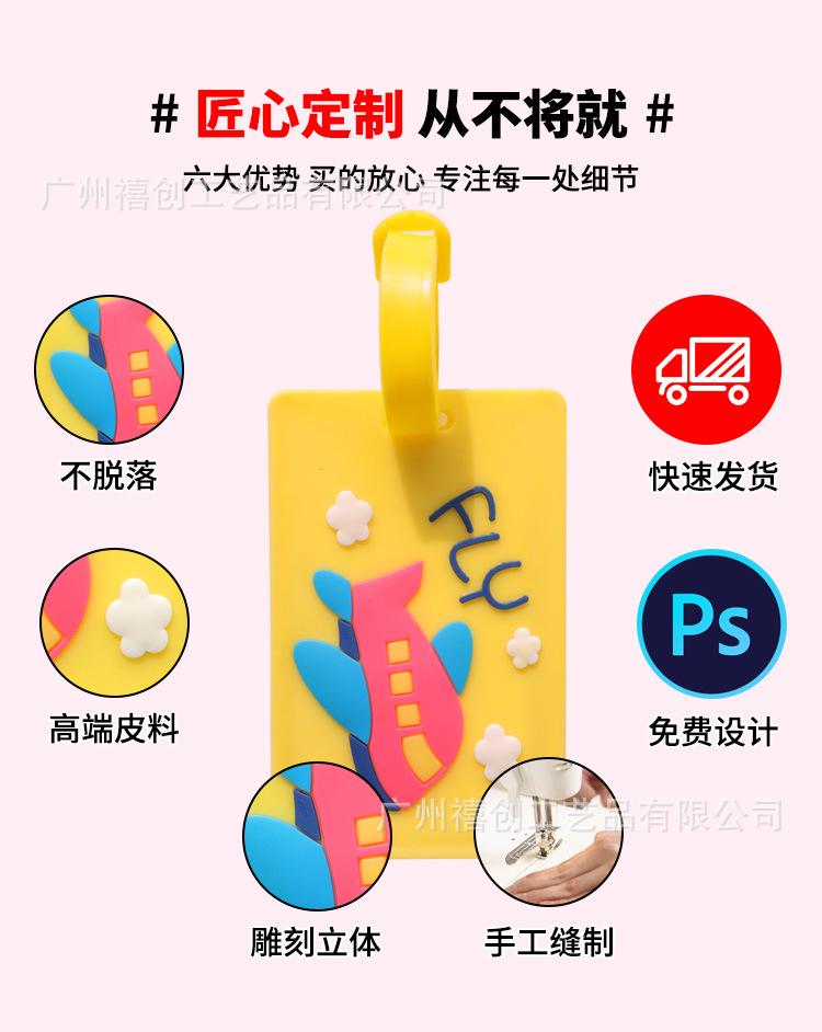 Etiqueta de equipaje de PVC personalizada, etiqueta de goma epoxi, logotipo personalizado, tarjetero de silicona, dibujos animados creativos, tarjeta de embarque de goma suave.
