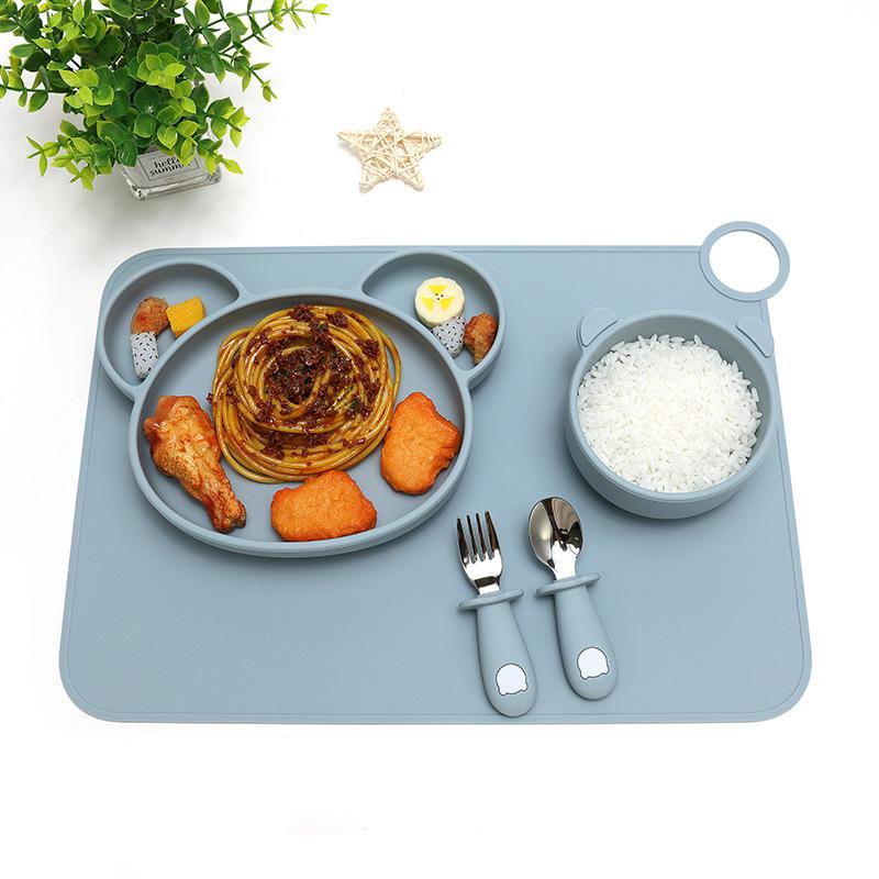Plato infantil de dibujos animados de Amazon, plato de silicona antideslizante con ventosa integrada para suplementos alimenticios, traje para bebés, maternal e infantil