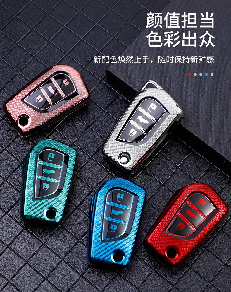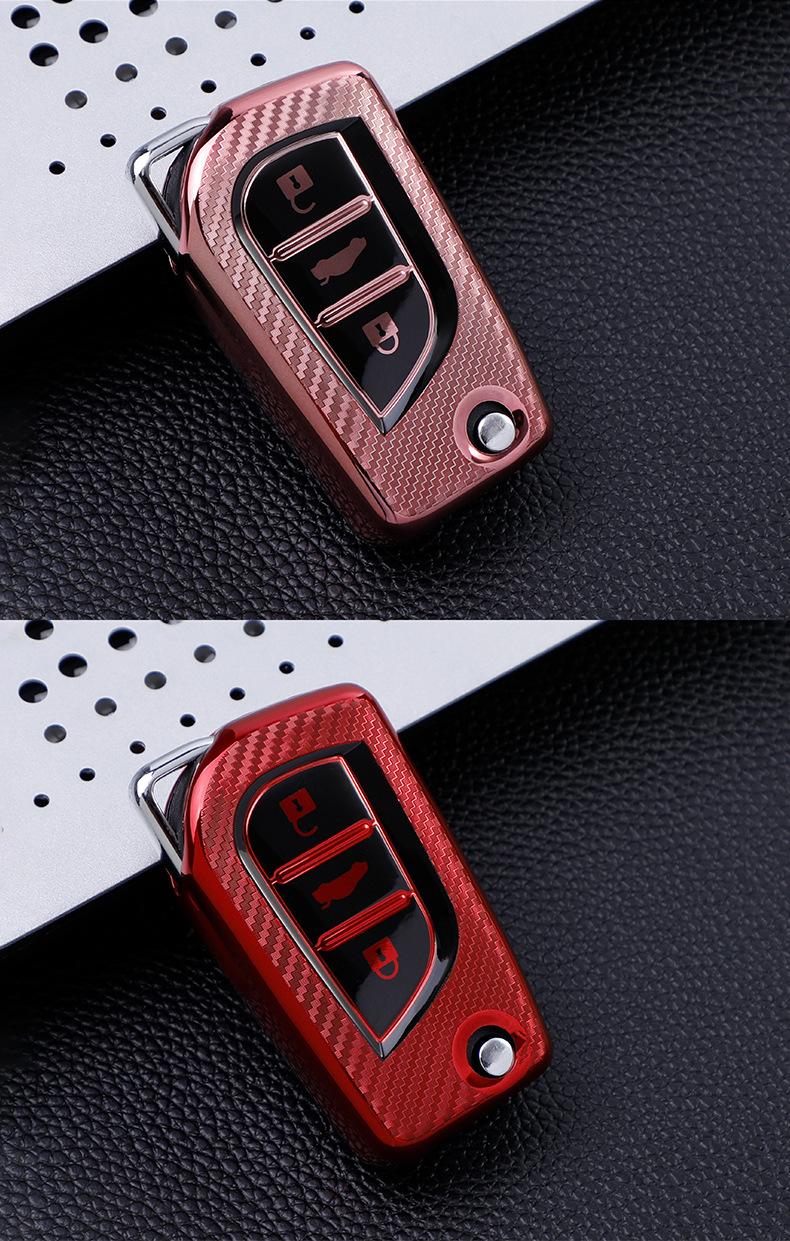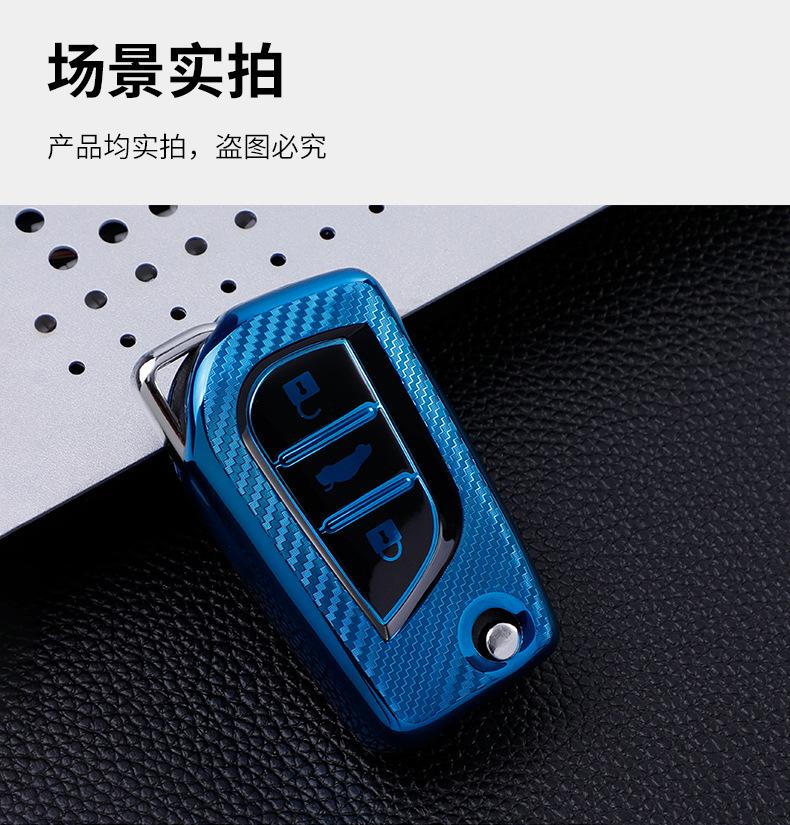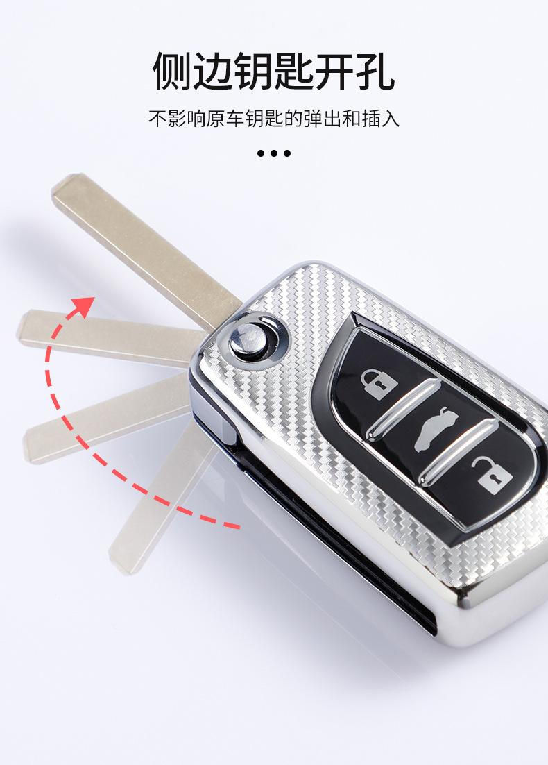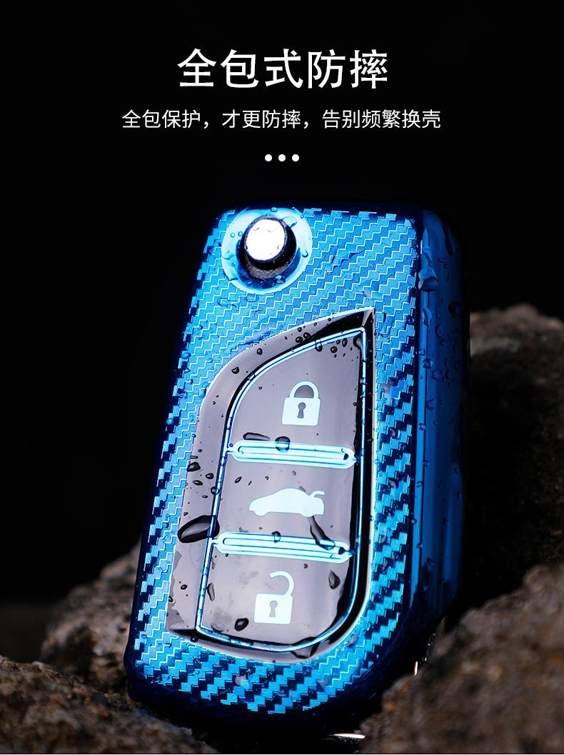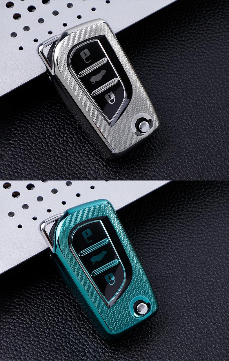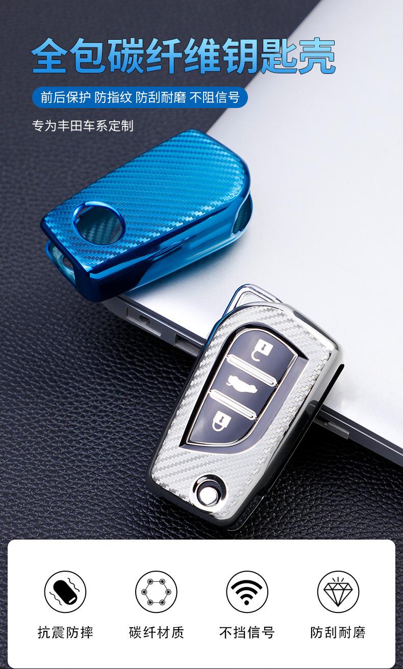 Adecuado para la cubierta de llave de Toyota, patrón de fibra de carbono TPU, funda de llave de coche plegable todo incluido Corolla, funda protectora con hebilla
