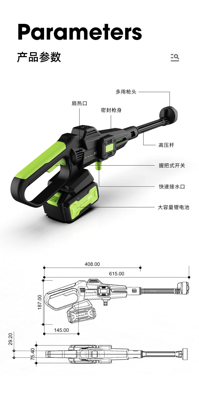 Pistola de agua inalámbrica para lavado de autos, pistola de agua de alta presión con carga de batería de litio, venta al por mayor, conveniente mini lavado de autos, artefacto de lavado de autos eléctrico