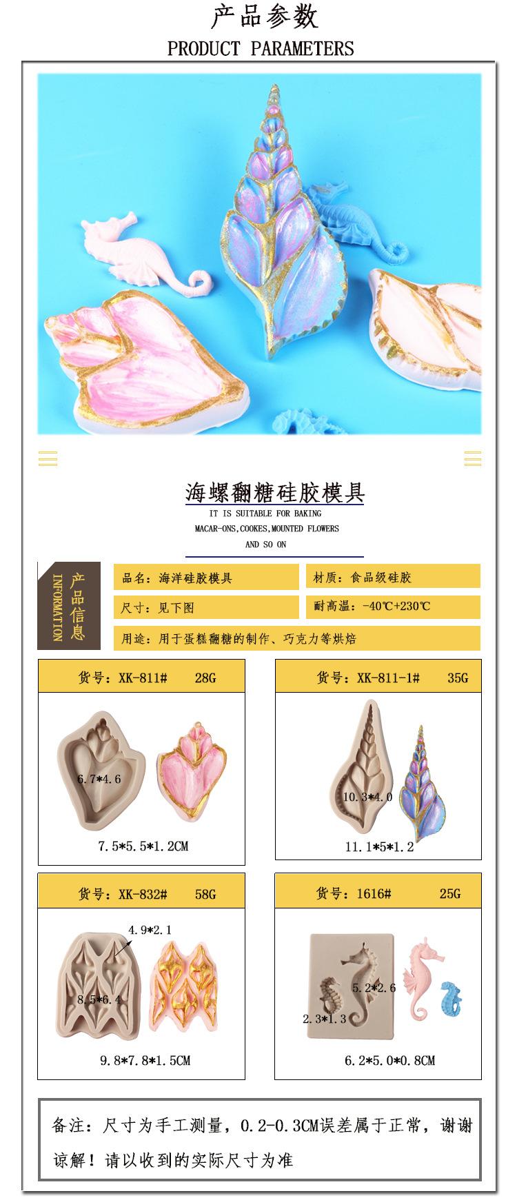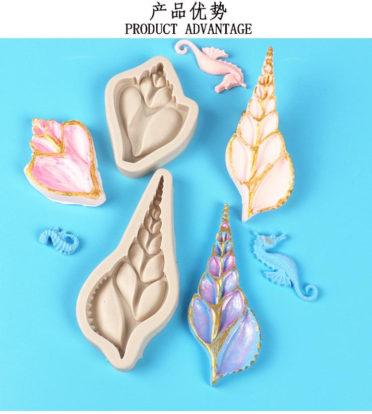 Molde de silicona de la serie Ocean Wind, molde de silicona para fondant de concha, molde de silicona para decoración de chocolate, molde de gel para hornear con forma de gota