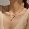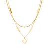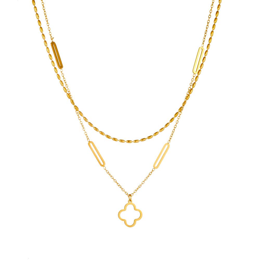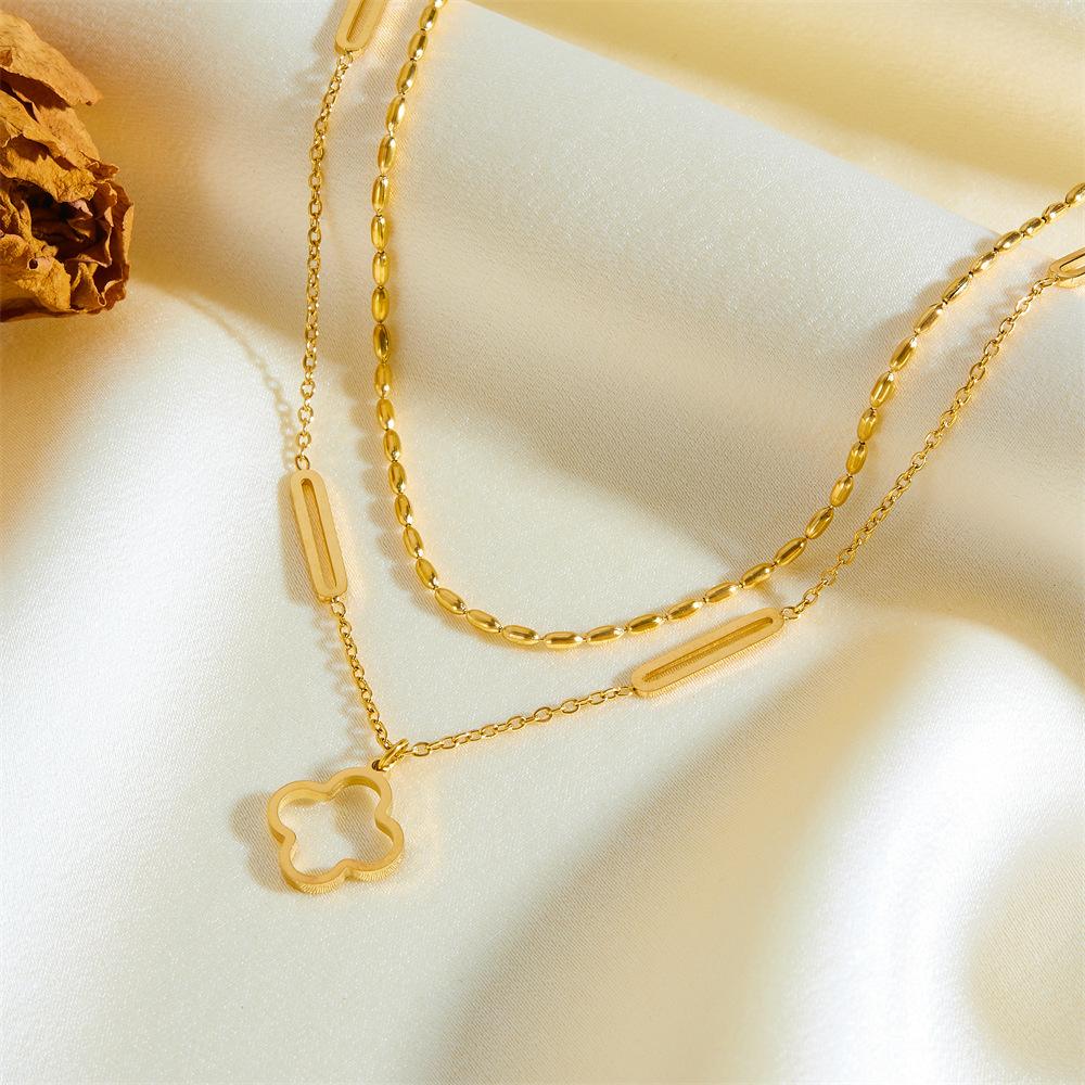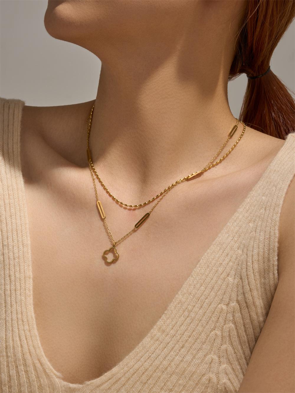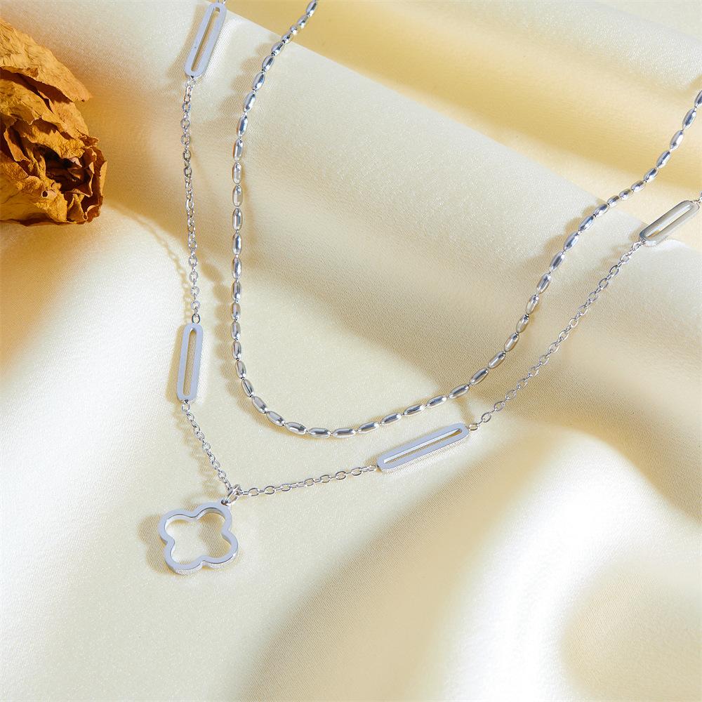 Collar de acero de titanio para mujer, elegante, moderno, de lujo, ligero, de alta gama, con doble capa apilada, con trébol de cuatro hojas hueco, combina con todo.