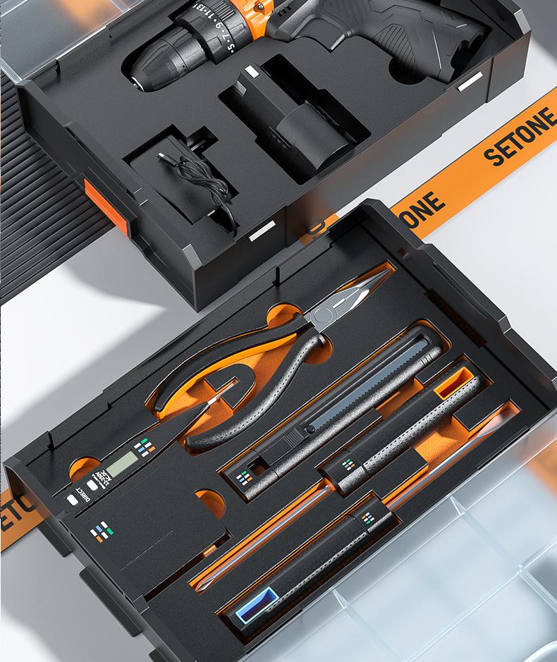 Herramientas para el hogar Juego de taladro eléctrico Caja de herramientas Juego de reparación Destornillador Broca Herramienta Regalo Combinación Venta al por mayor Eléctrico
