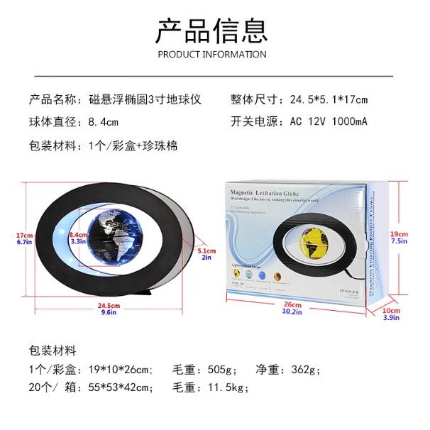 Globo de levitación magnética elíptico de 3 pulgadas, novedoso regalo creativo para estudiantes, decoración del hogar, adornos de globo.