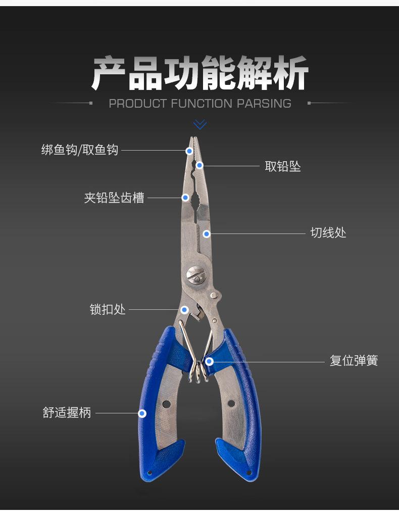 Pinzas para señuelos de acero inoxidable Pinzas de pesca multifuncionales Tijeras de pesca portátiles Quita anzuelos Corta líneas Herramientas de pesca Venta al por mayor