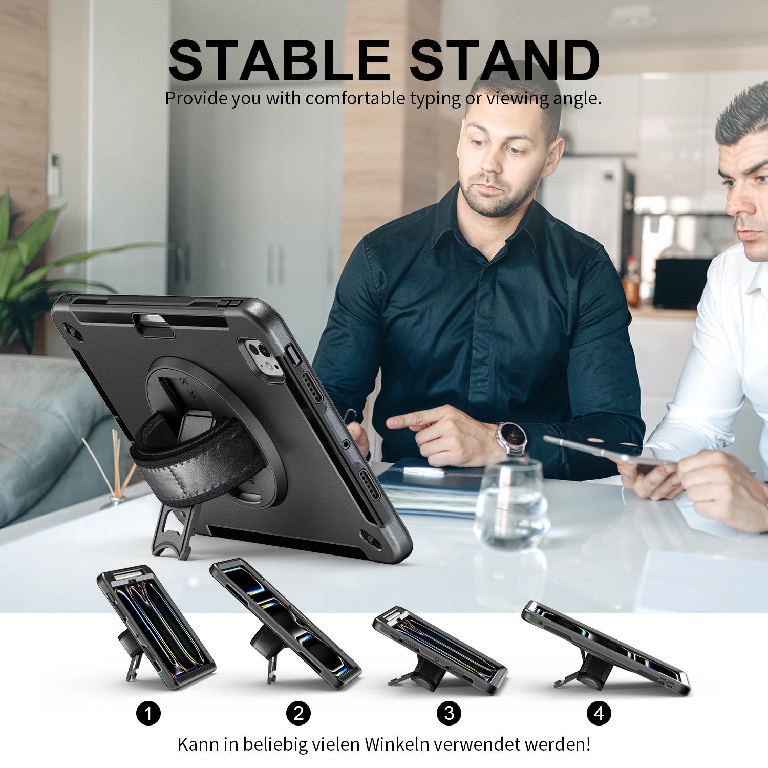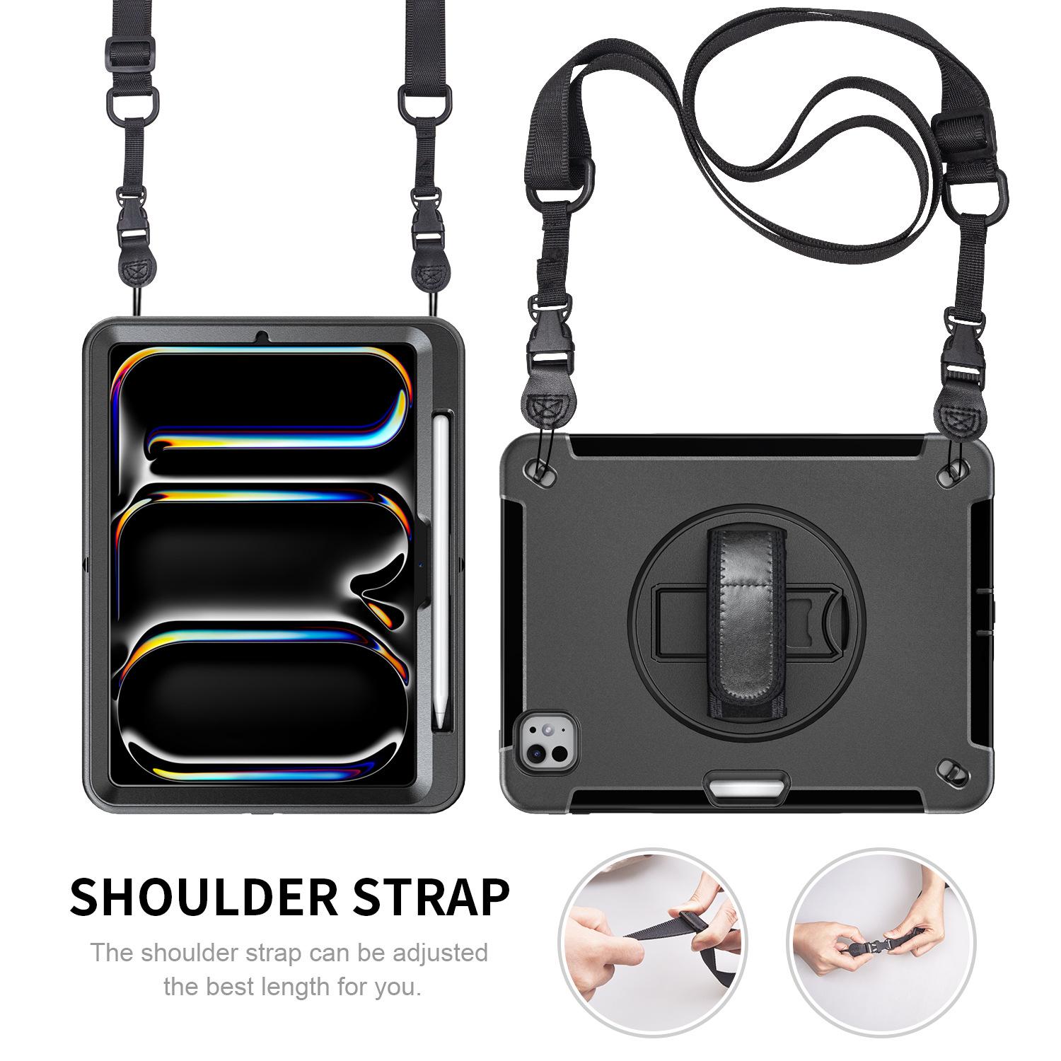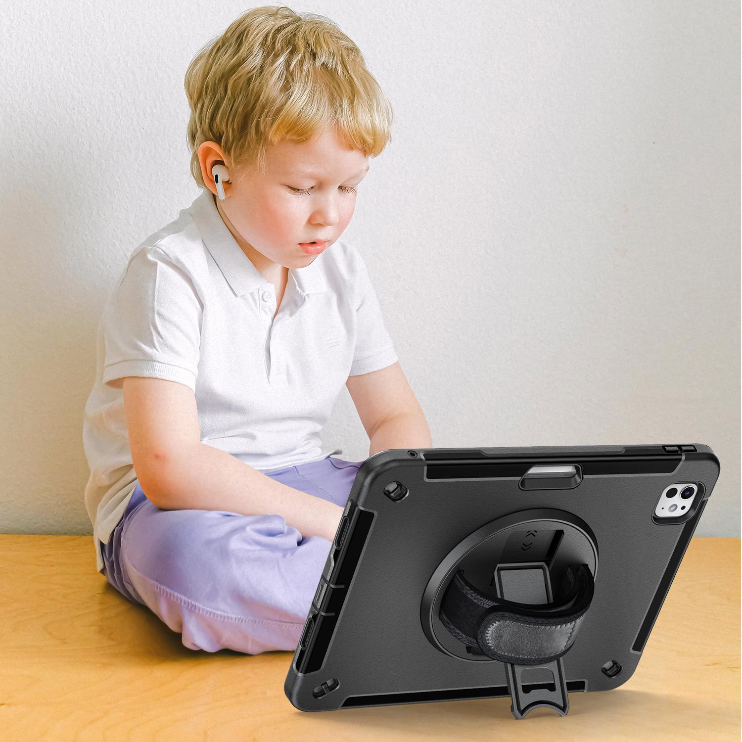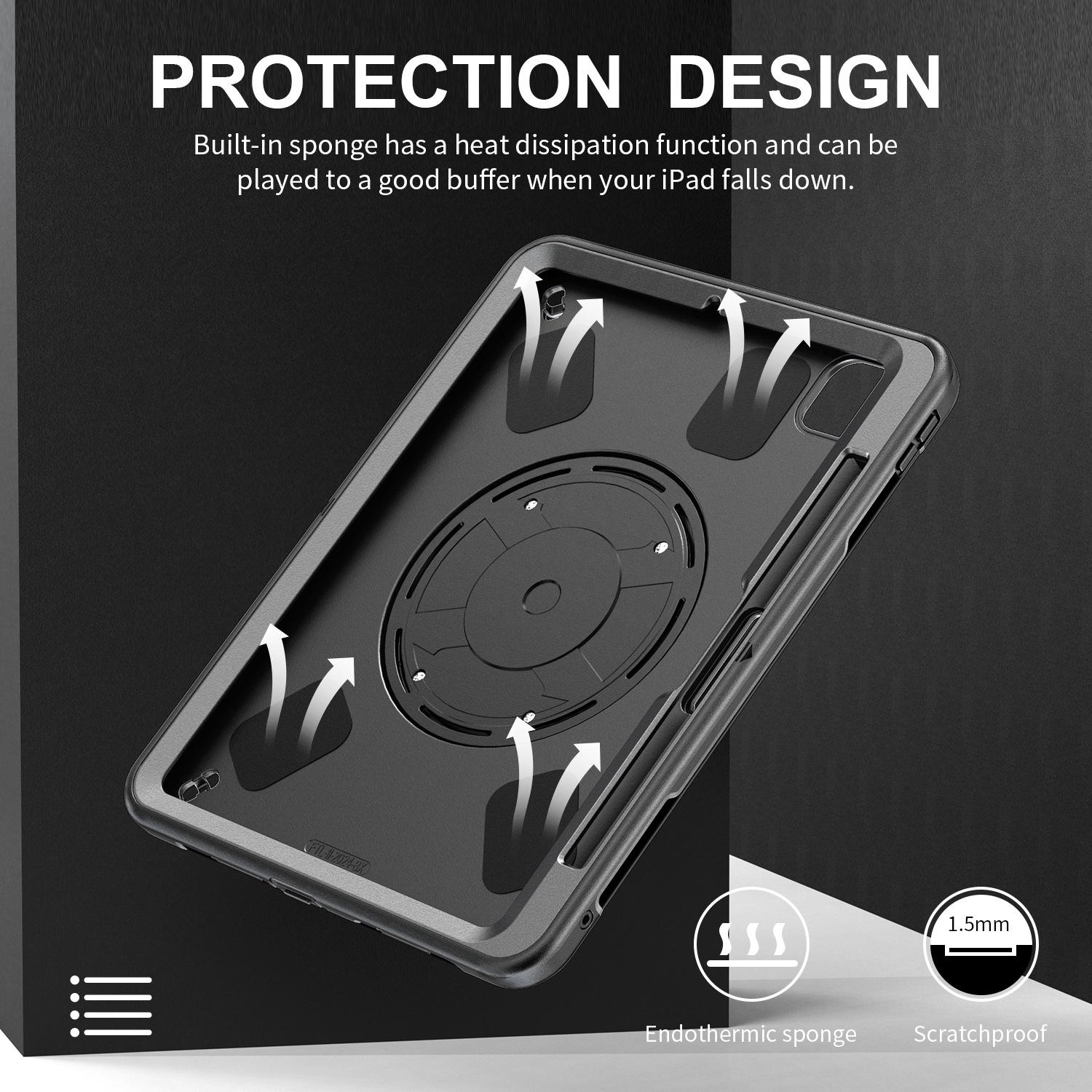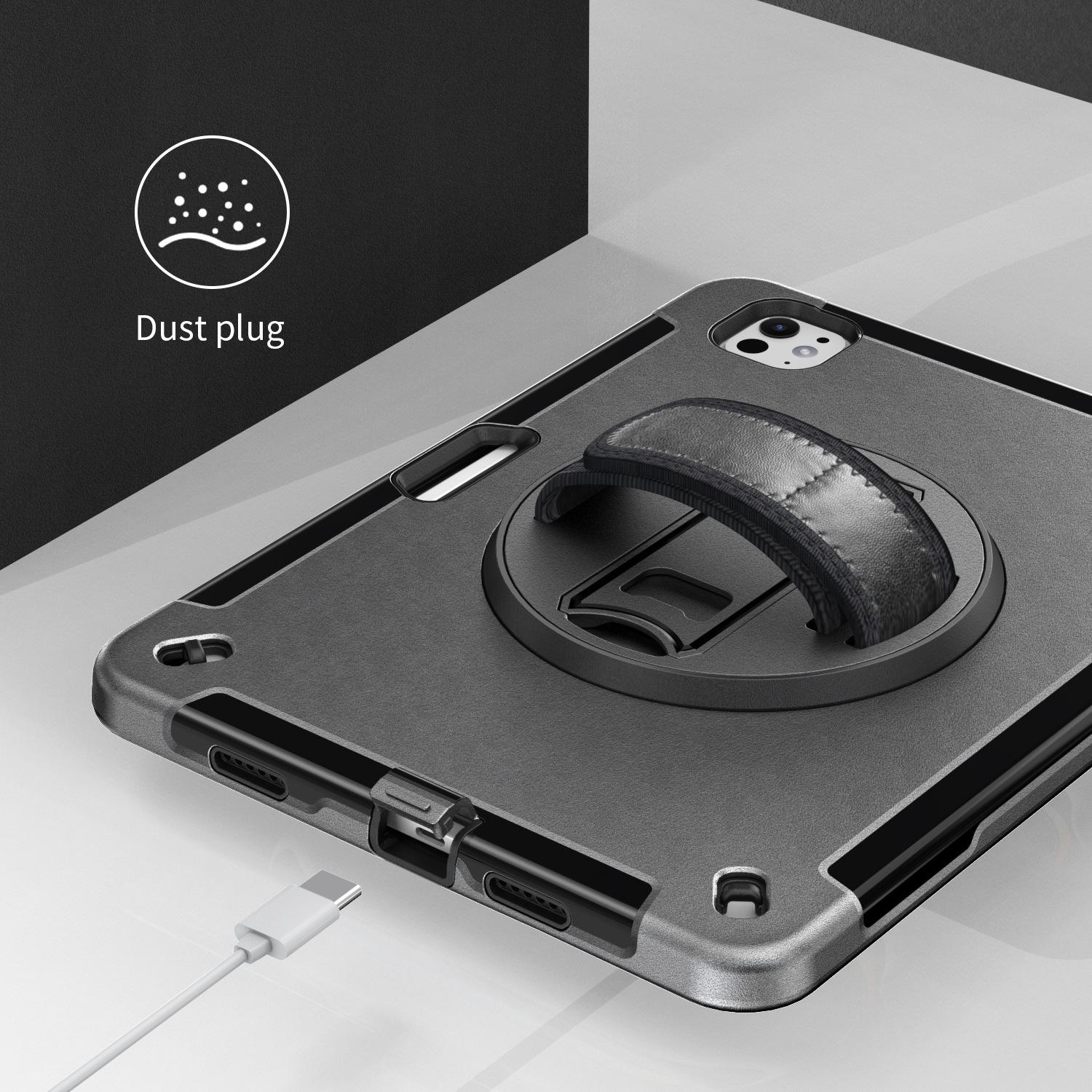 Funda protectora para tableta Apple iPad Pro 11 con tres correas de mano de TPU anticaídas y rotación para iPad