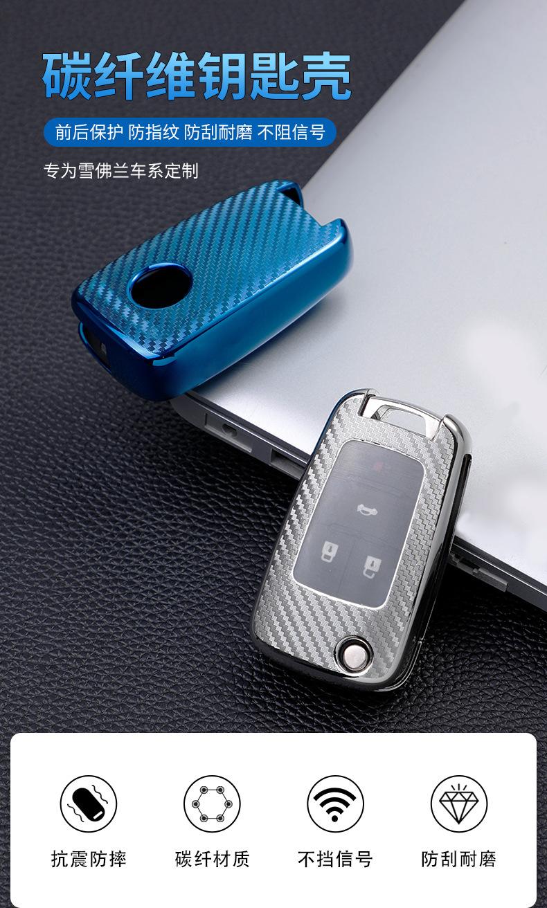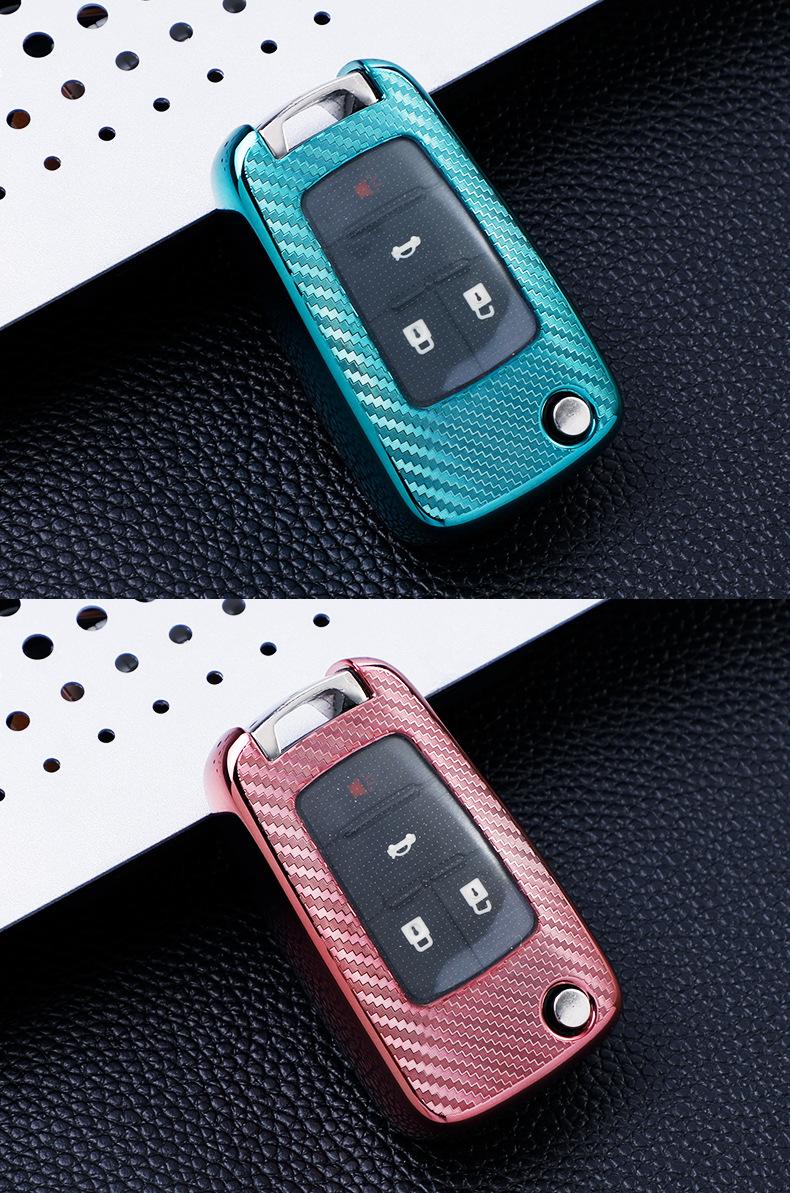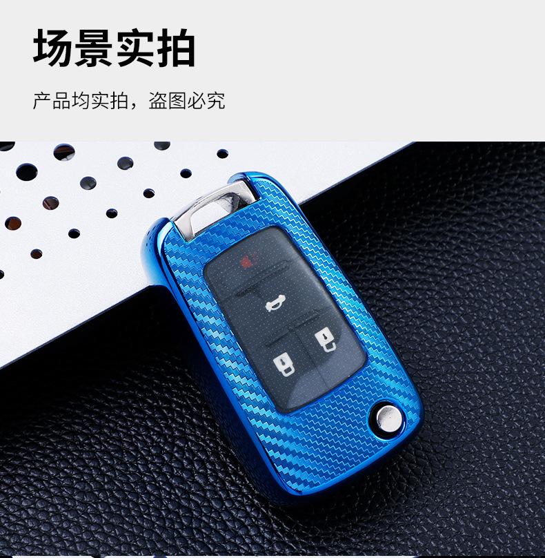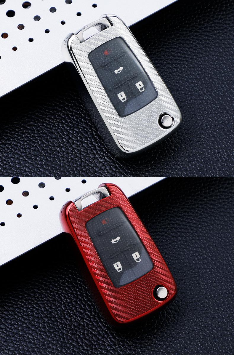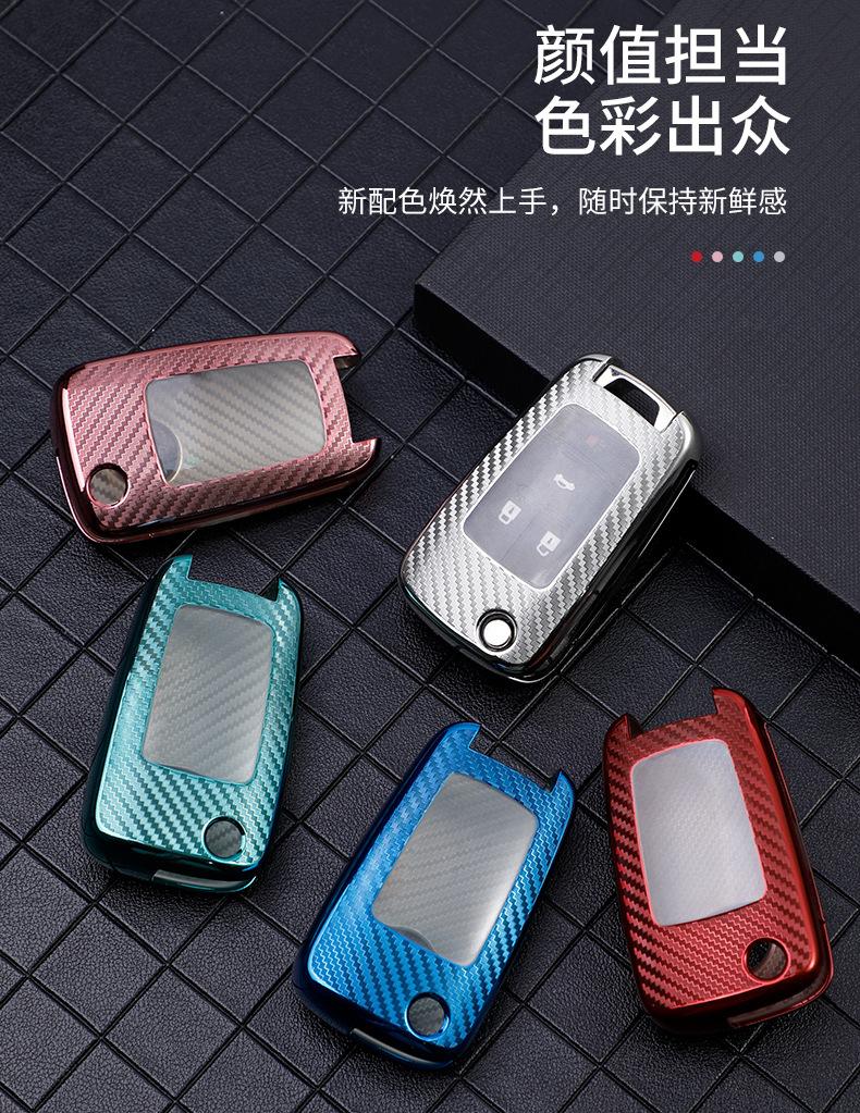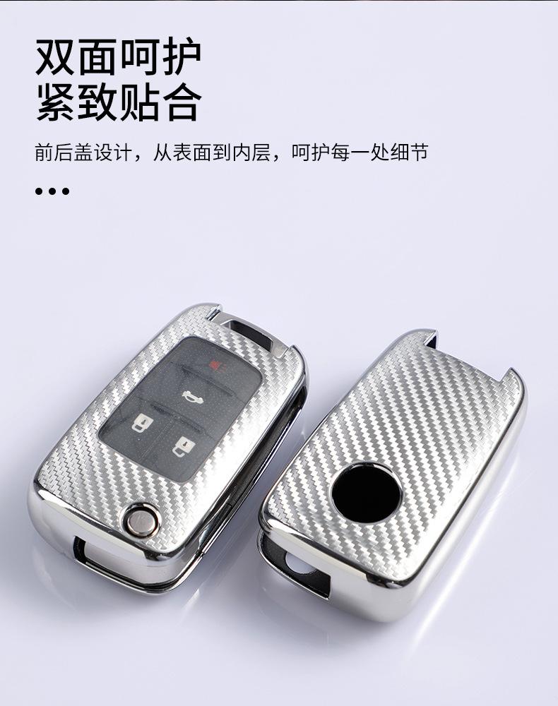 Patrón de fibra de carbono adecuado para funda de llave Buick yinglang 18T, funda de llave plegable Chevrolet, funda de llave de coche de TPU con hebilla