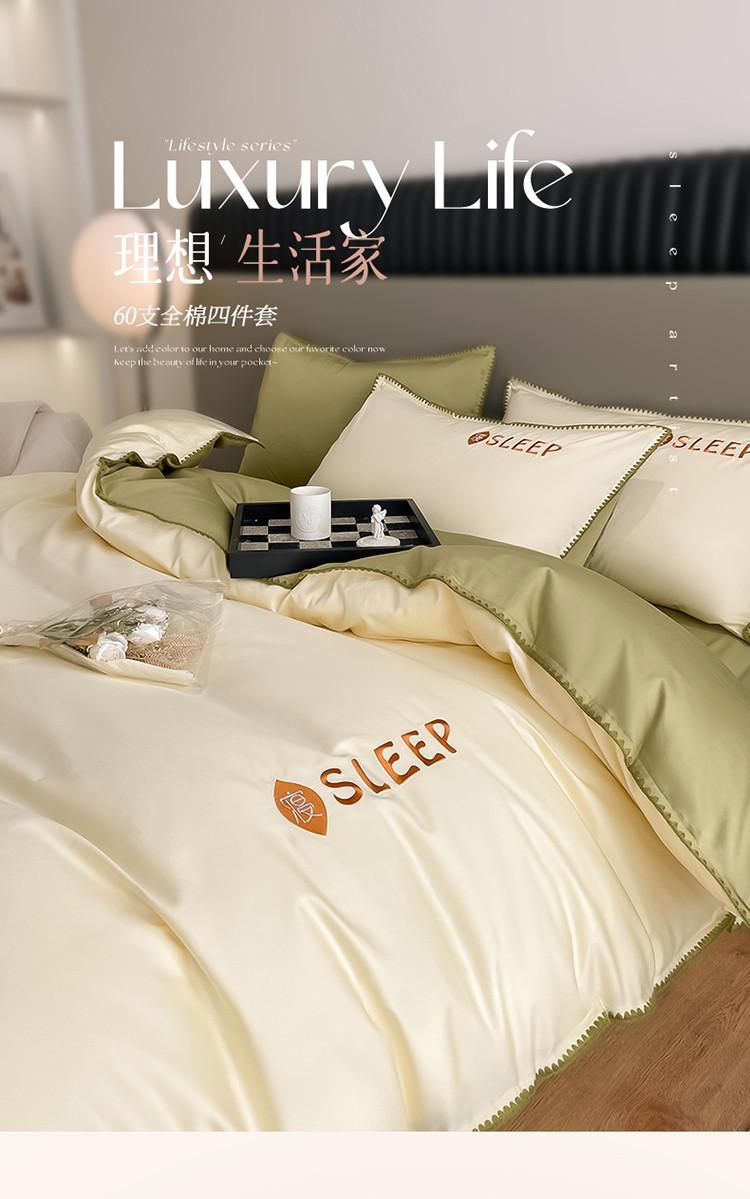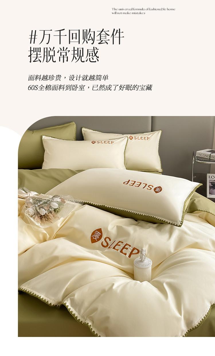 Juego de cama de cuatro piezas de algodón de lujo ligero de 60 pts, ropa de cama de algodón de fibra larga, sábanas de algodón 100%, juego de funda de edredón y gorro de cama, venta al por mayor
