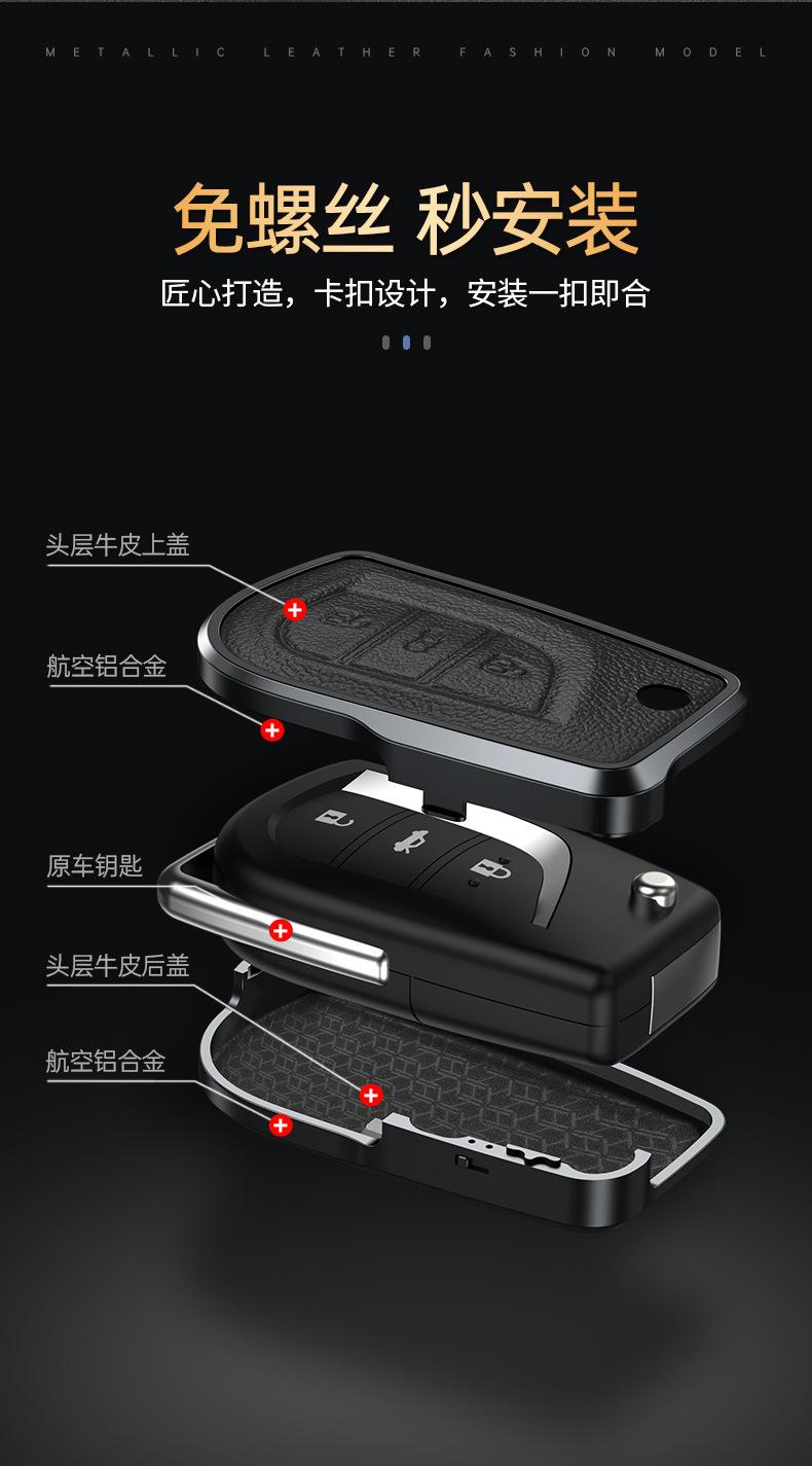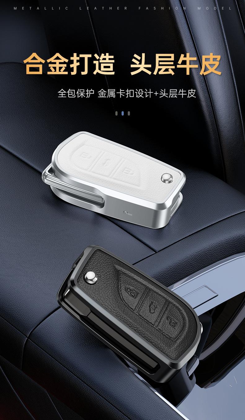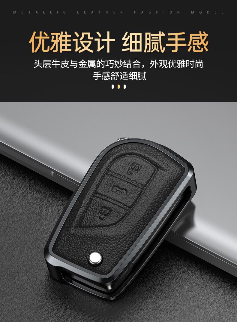 Adecuado para Toyota Reiz, Corolla plegable, funda para llave, Ralink Highlander, funda de cuero para llave de metal con hebilla