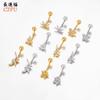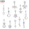 Anillo de ombligo de acero inoxidable con circonita cúbica, colgante largo, mariposa, piercing para el cuerpo