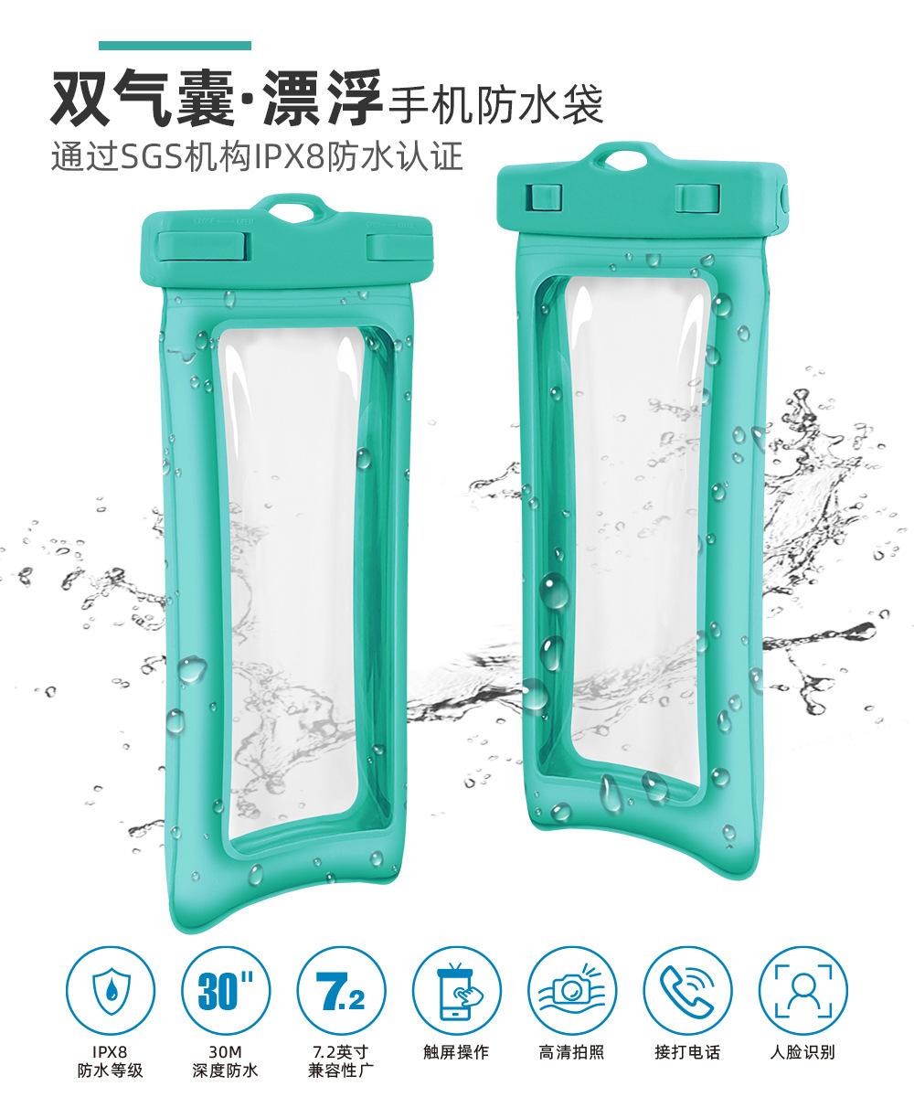 Suministro Transfronterizo Bolsa Impermeable para Teléfono Móvil Flotante con Doble Bolsa de Aire Tpu Antihundimiento para Deriva Buceo Natación