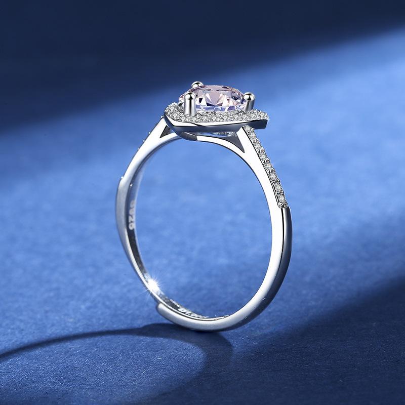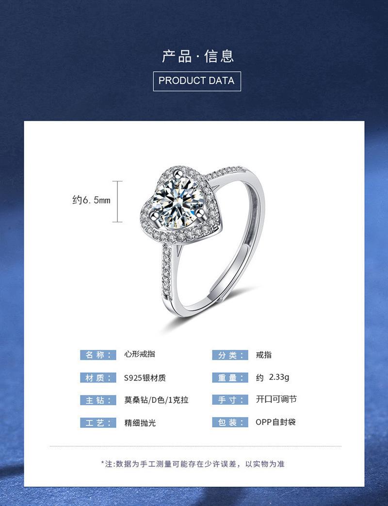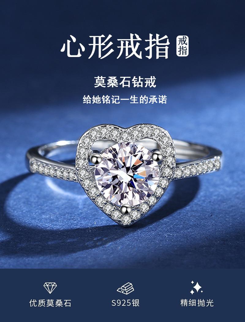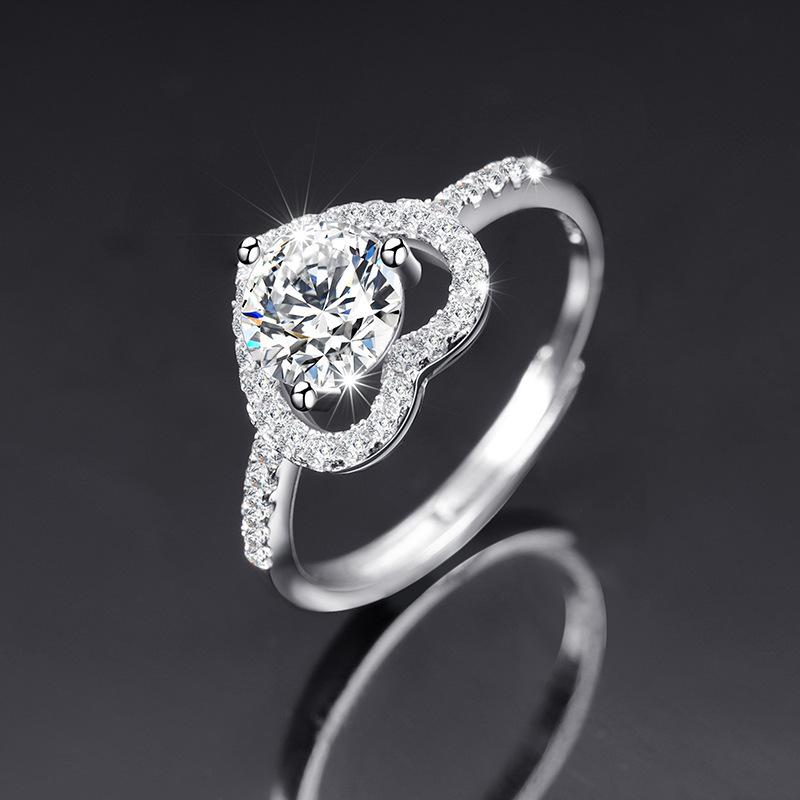 Anillo de boda para mujer de Moissanita de amor plata anillo para dedo vivo regalo de San Valentín fábrica en vivo venta al por mayor nicho anillo en forma de corazón