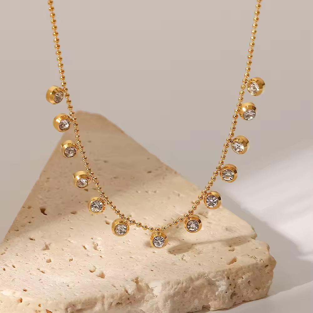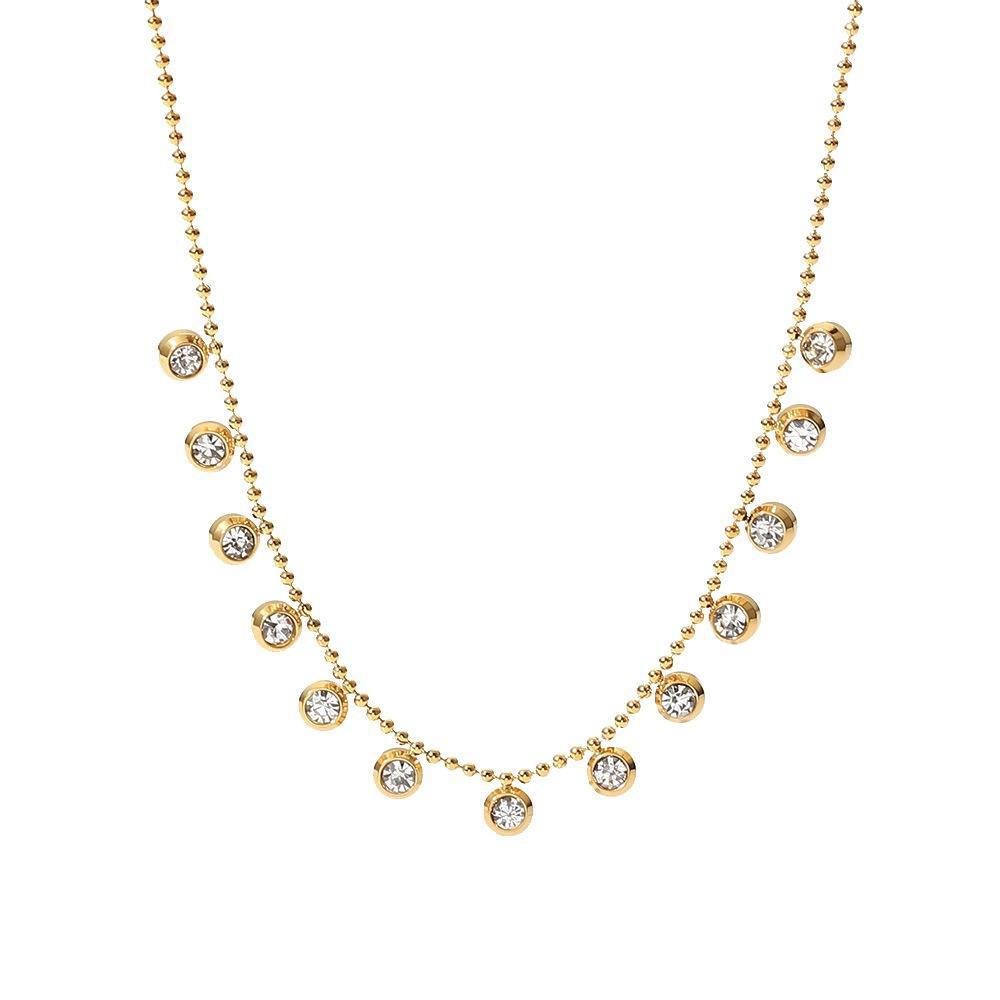 Compra Cadena de cuello con borlas de diamantes francesa INS, collar de acero inoxidable de titanio a juego con circonita blanca para mujer. al por mayor en Joom.pro