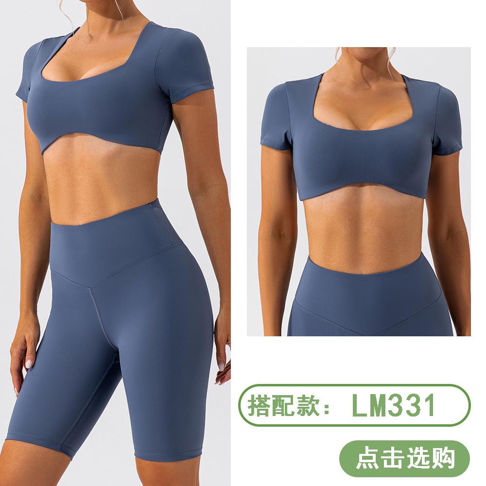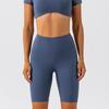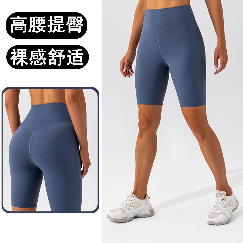 Pantalones cortos de entrenamiento de yoga de cinco puntos ajustados de control de abdomen que levantan glúteos de secado rápido con sensación de desnudez para deportes al aire libre, correr y fitness europeo y americano 338