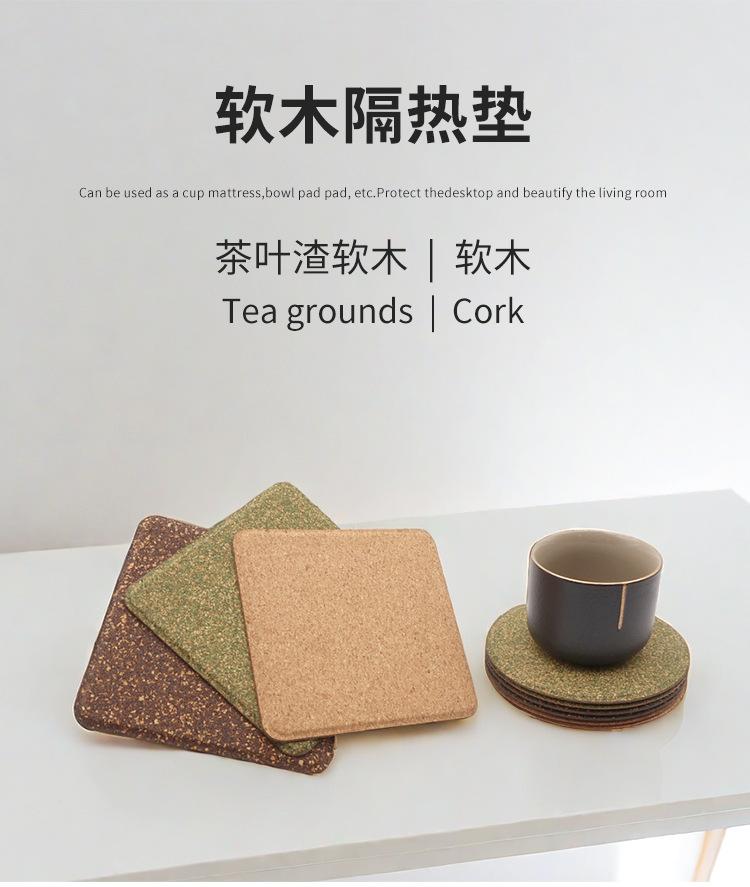 Amazon Comercio Exterior Corcho Residuo de Té Protección Ambiental Posavasos Posavasos Antiescaldante Tapete para Olla Juego de Té de Madera Tapete Aislante del Calor