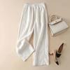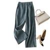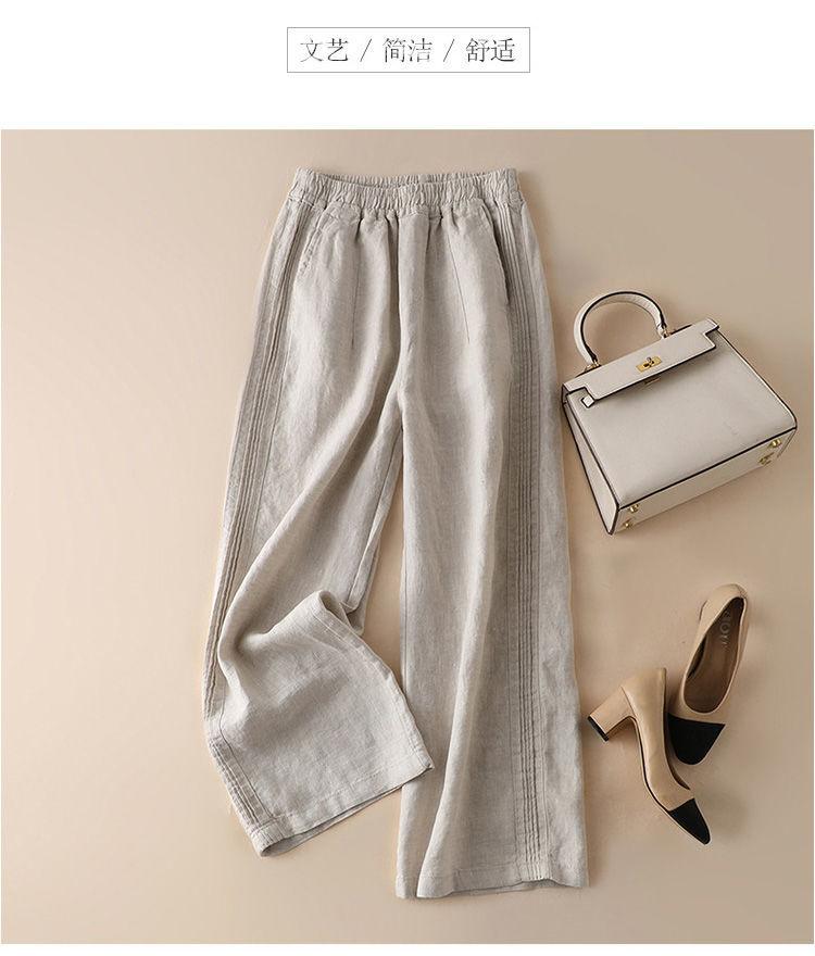 Pantalones anchos de algodón y lino con pliegues laterales para mujer, de primavera, verano y otoño, de cintura alta, adelgazantes, combinables, rectos e informales.