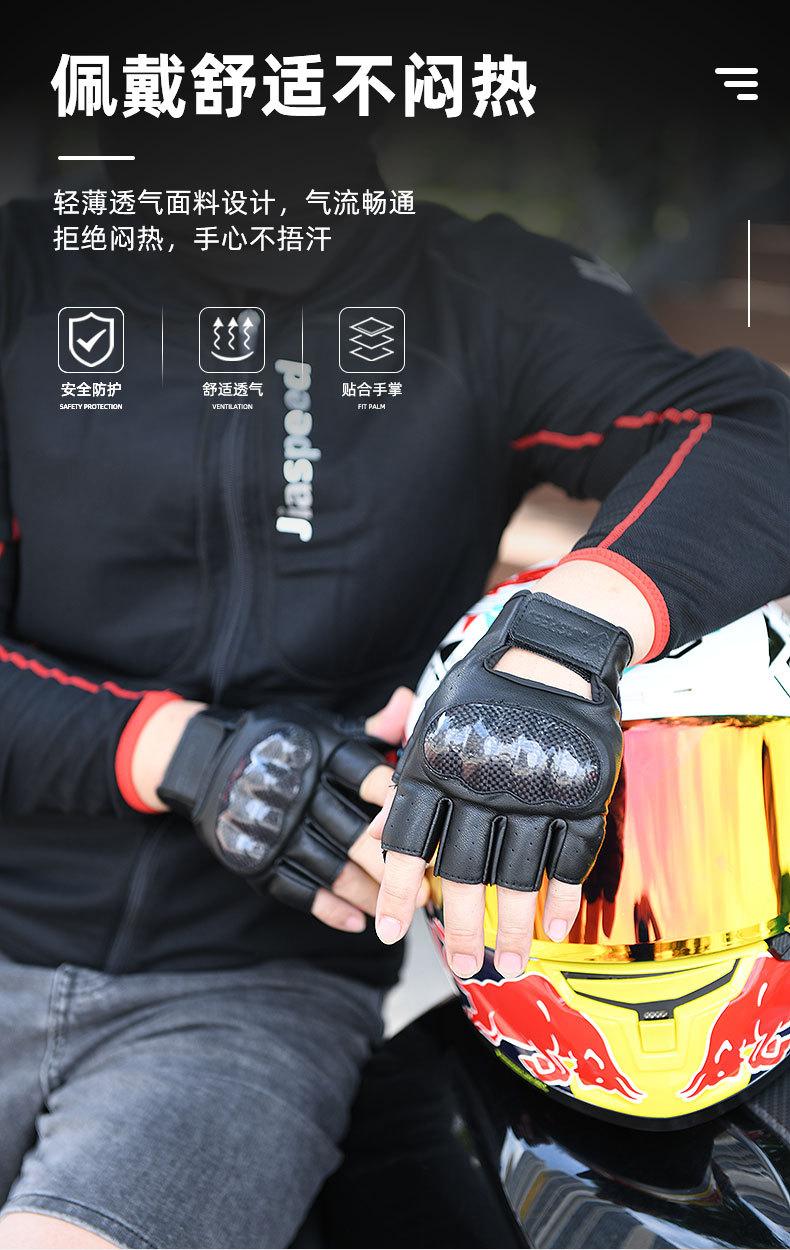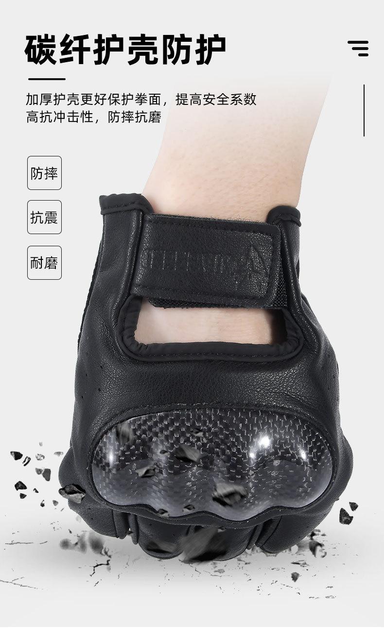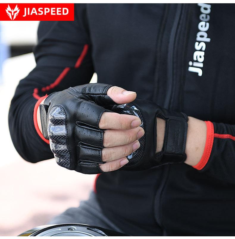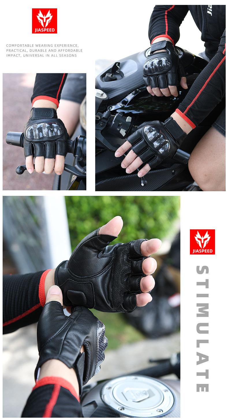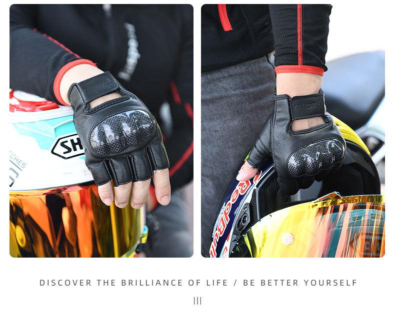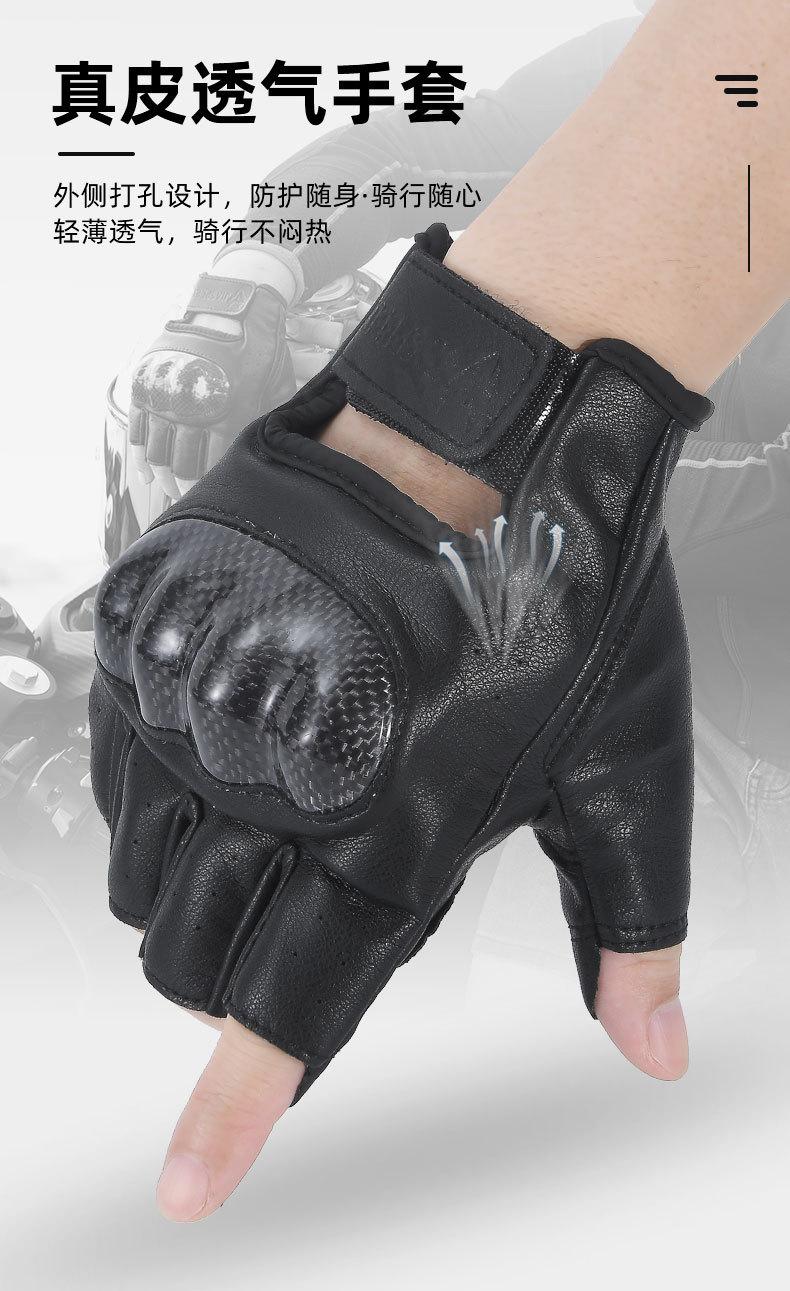Guantes de equitación para motocicleta máquina equipo Knight cuero genuino fibra de carbono verano transpirables resistentes a caídas guantes de medio dedo para hombre