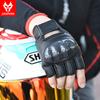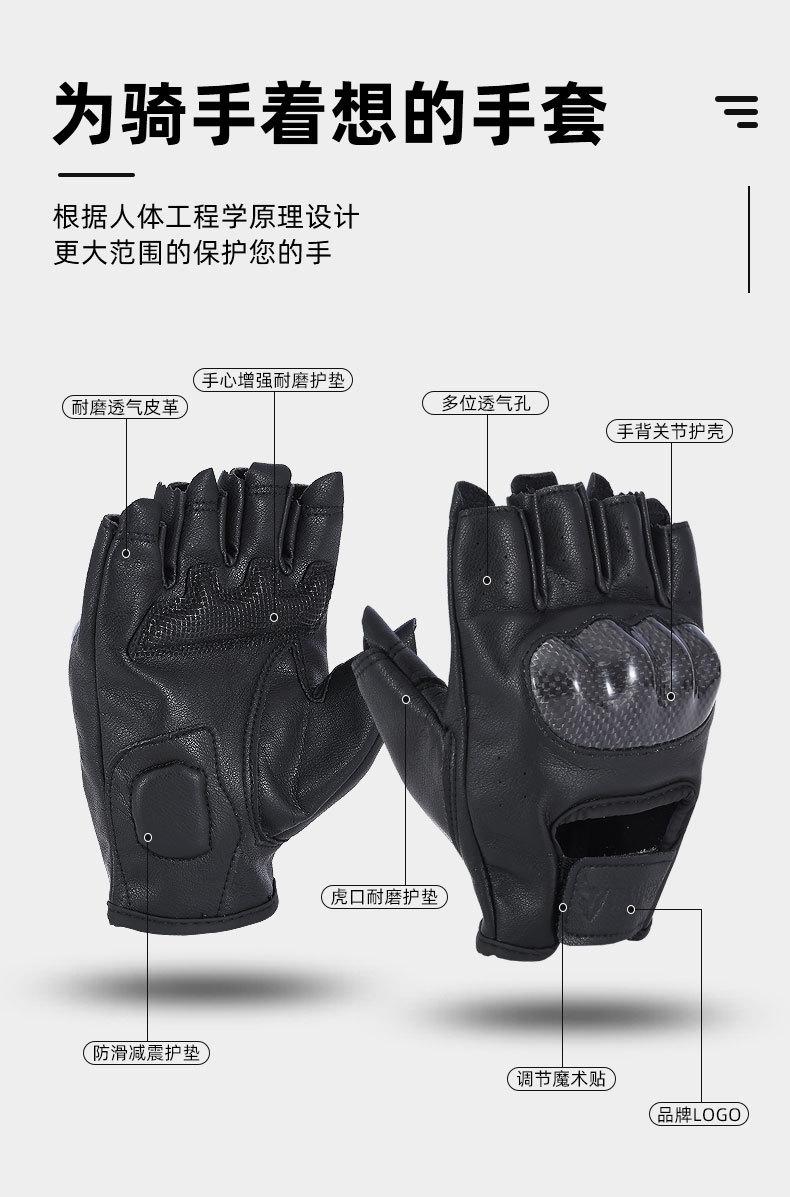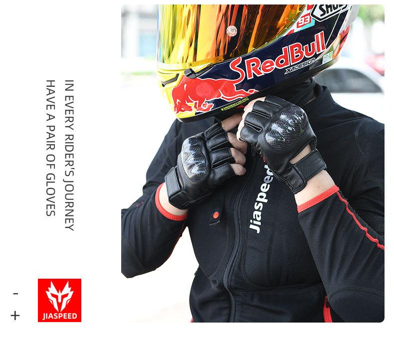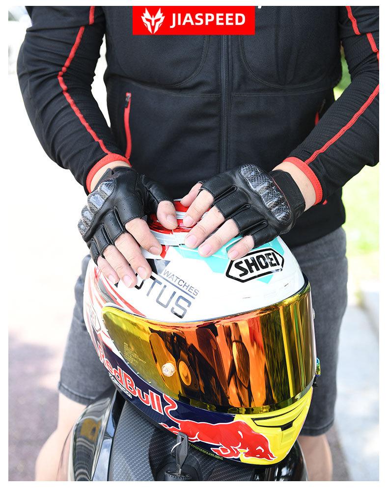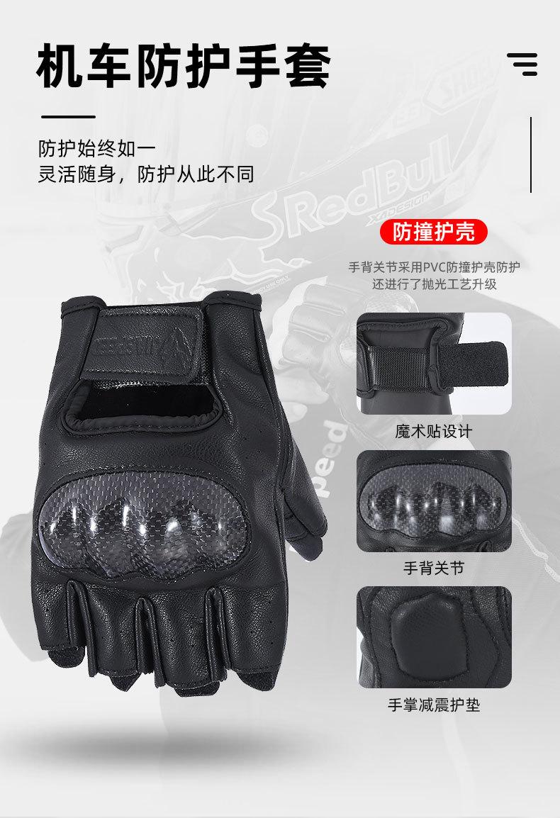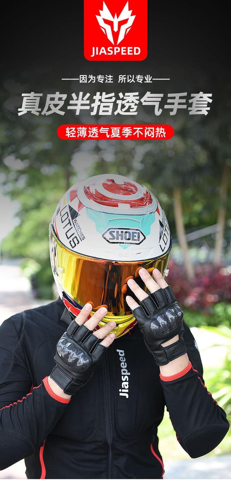 Guantes de equitación para motocicleta máquina equipo Knight cuero genuino fibra de carbono verano transpirables resistentes a caídas guantes de medio dedo para hombre