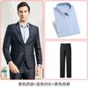 Black suit single piece, Black suit black trousers, Black suit blue shirt black trousers, Blue shirt