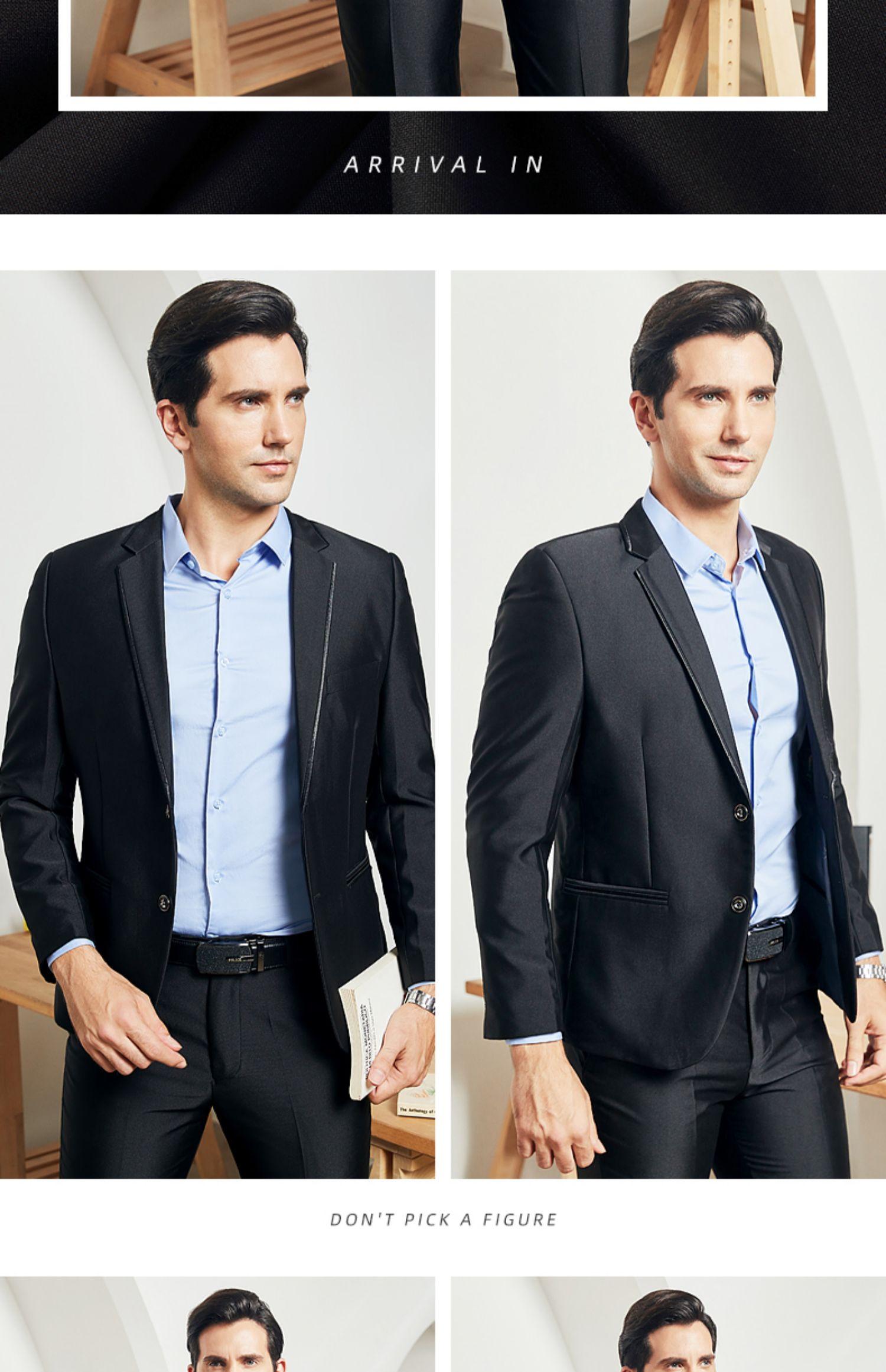 Chaqueta de traje profesional para hombre, nueva, negra, antiarrugas, de dos botones, para negocios, para las cuatro estaciones, estilo coreano, corte entallado.