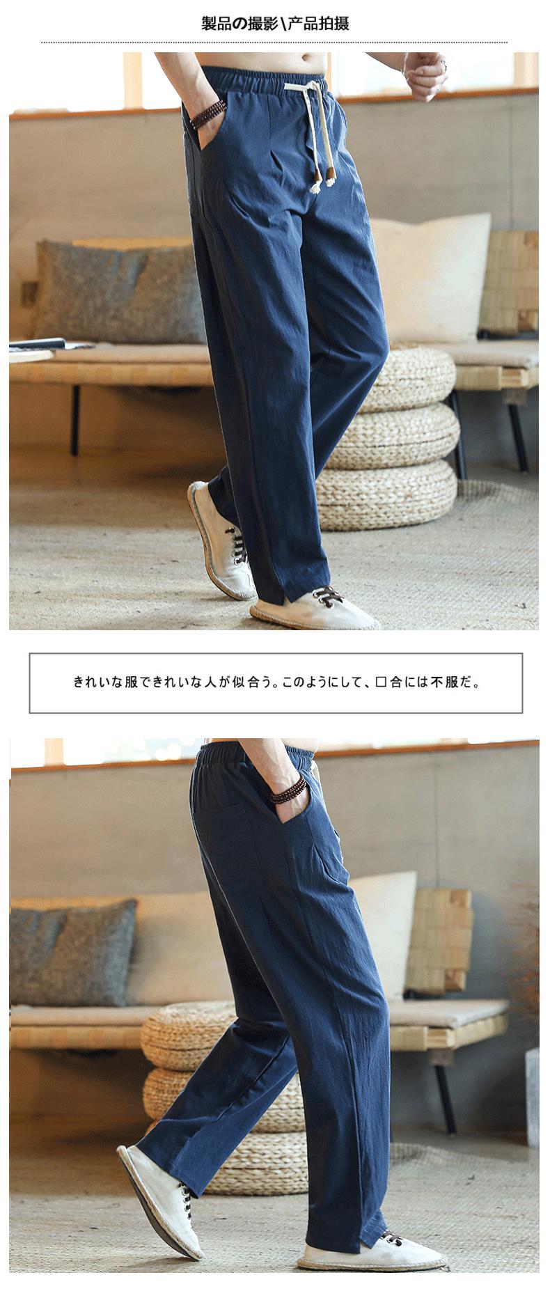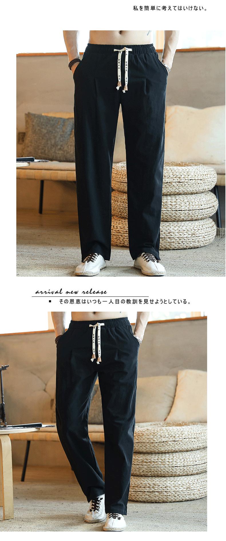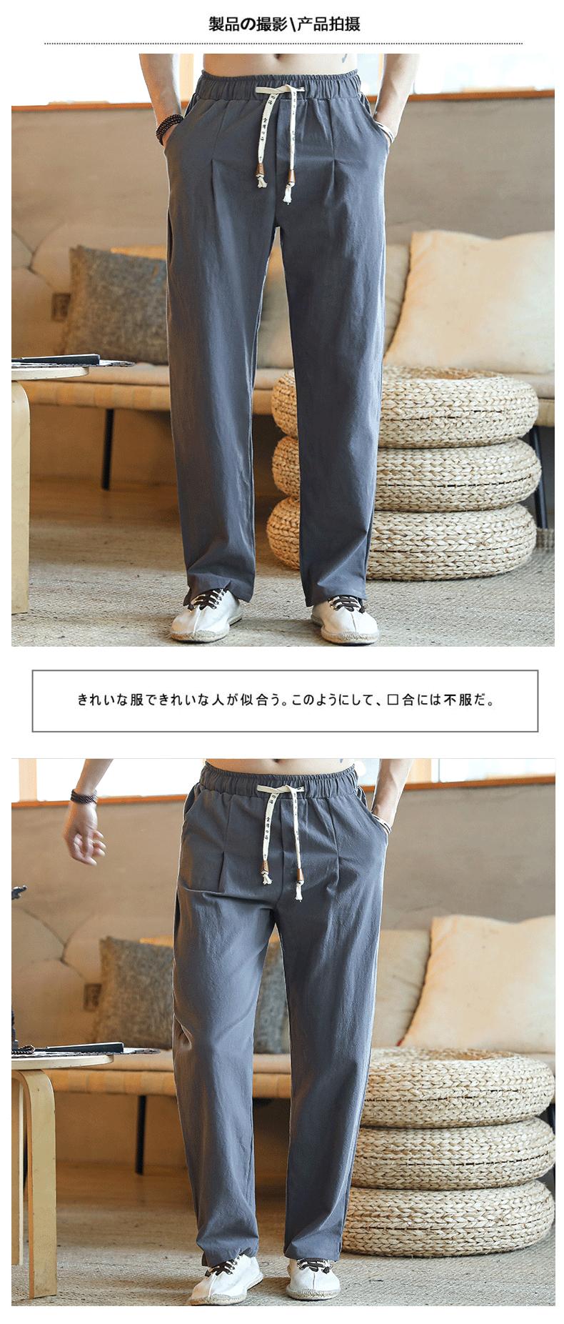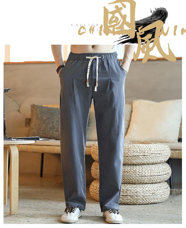 Primavera y Verano 2020 Nuevo Estilo Chino Pantalones de Lino de Color Sólido para Hombre Casual Sueltos Talla Grande Algodón Lino Pantalones Rectos