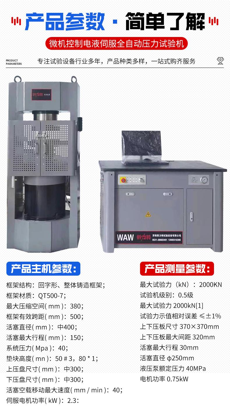 Máquina de prueba de presión automática servo electrohidráulica controlada por microcomputadora H200 toneladas para prueba de resistencia a la compresión de hormigón de cemento