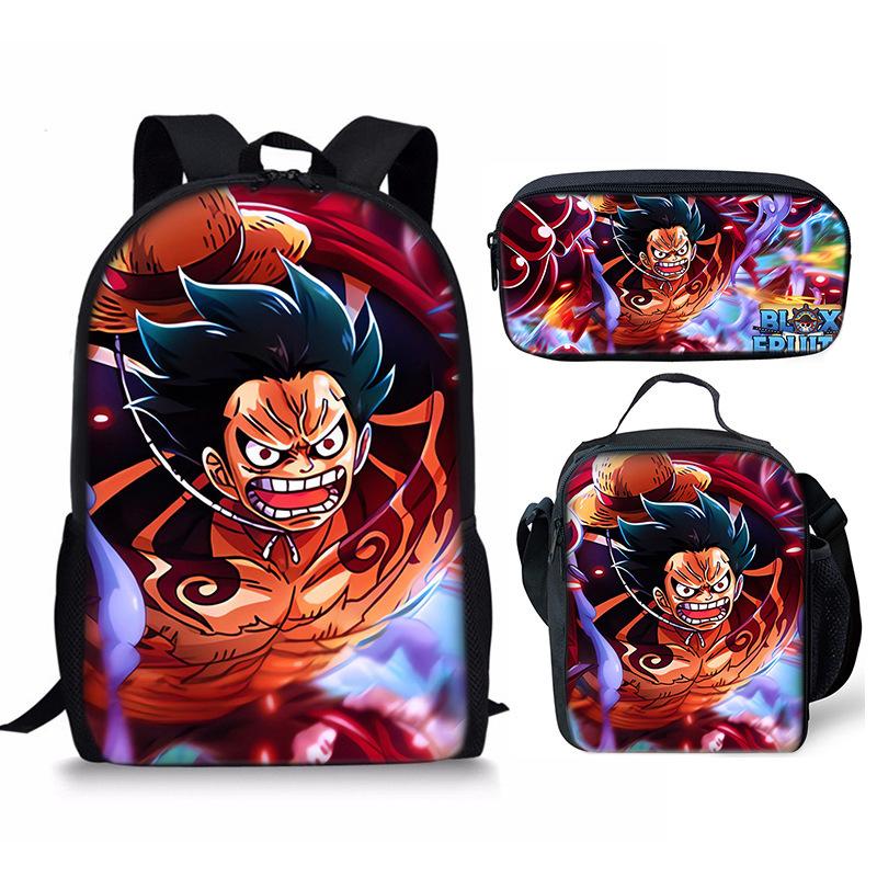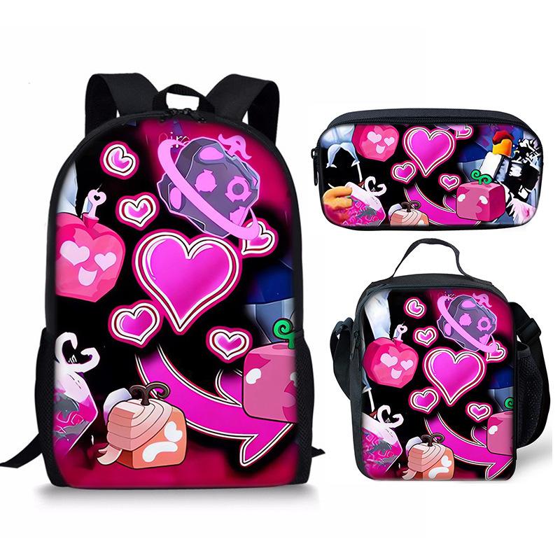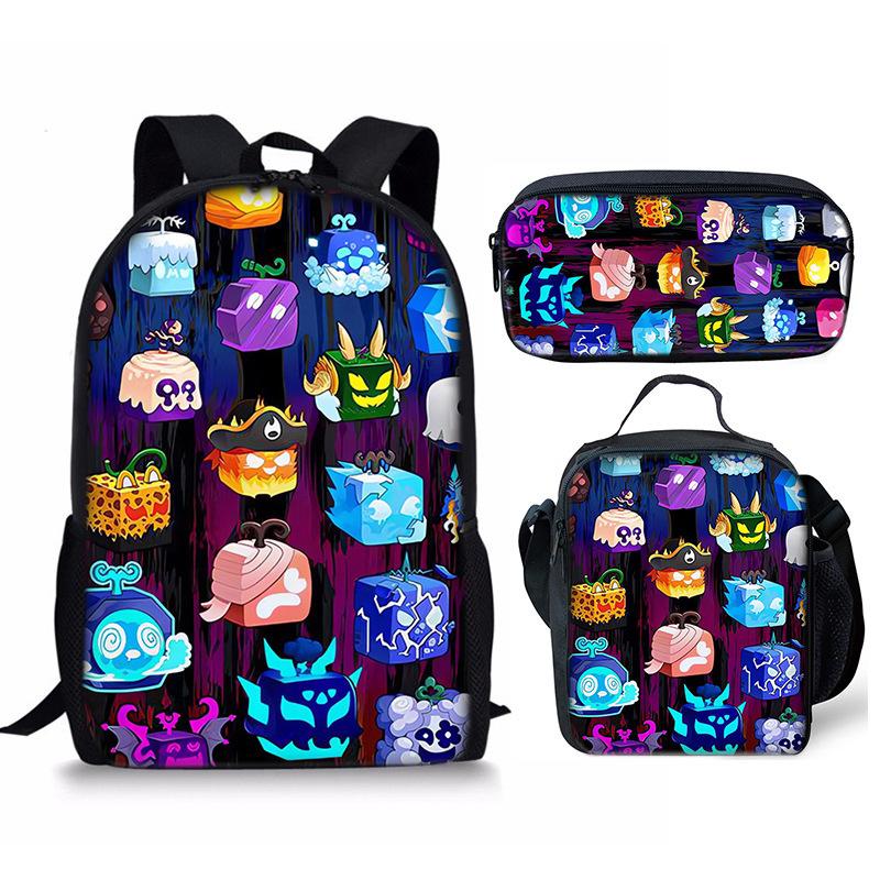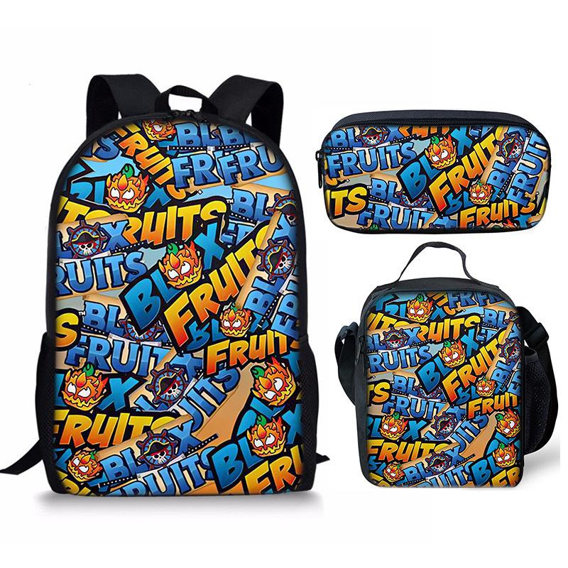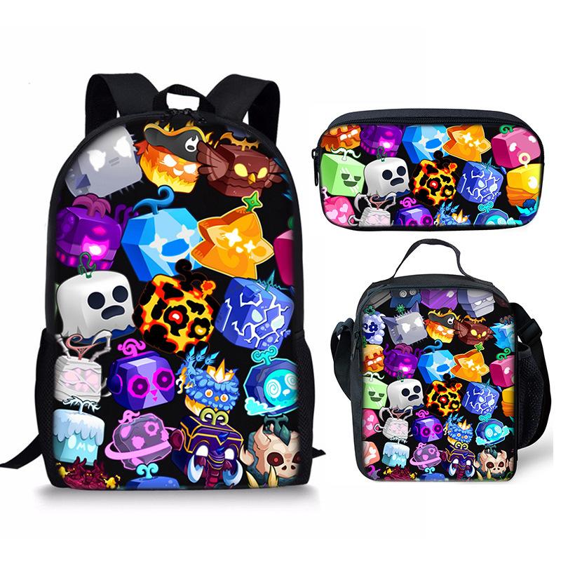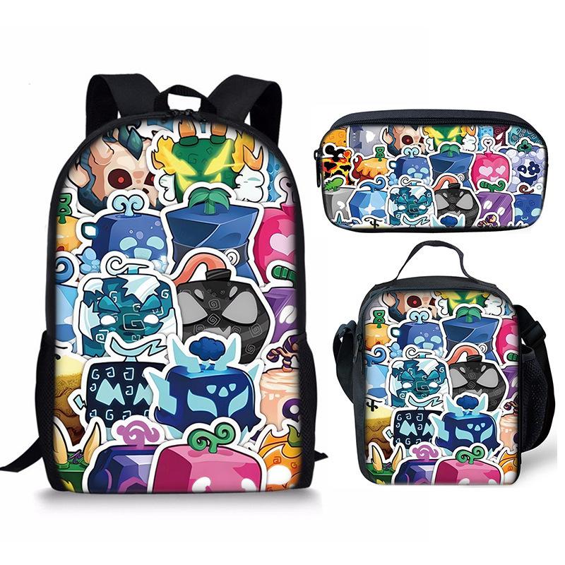 Mochila escolar de tres piezas con diseño de dibujos animados de ROBLOX Blox Fruits, ideal para hacer tú mismo.
