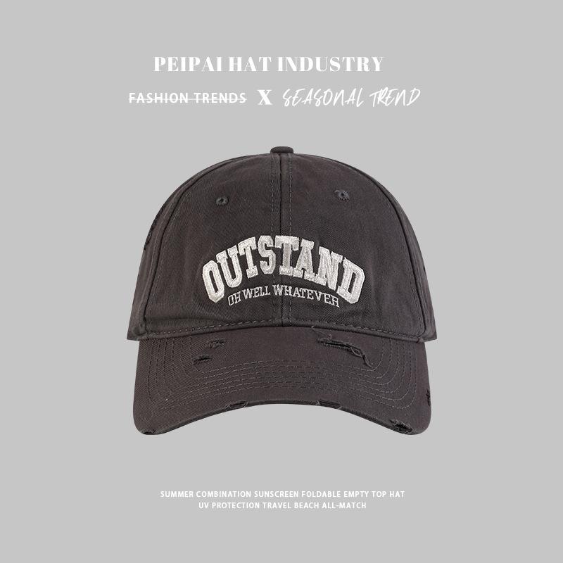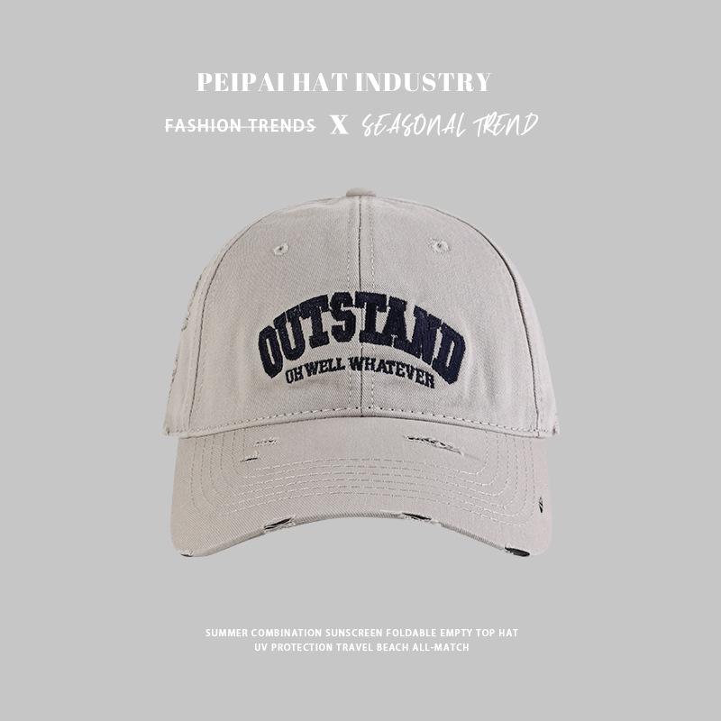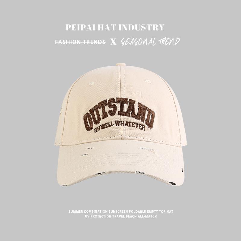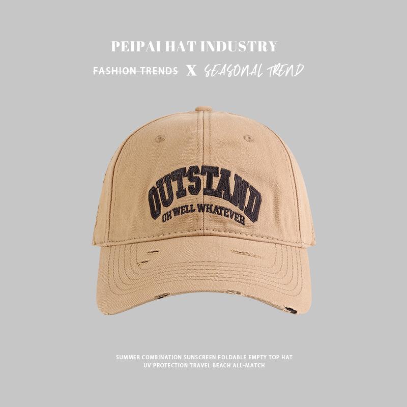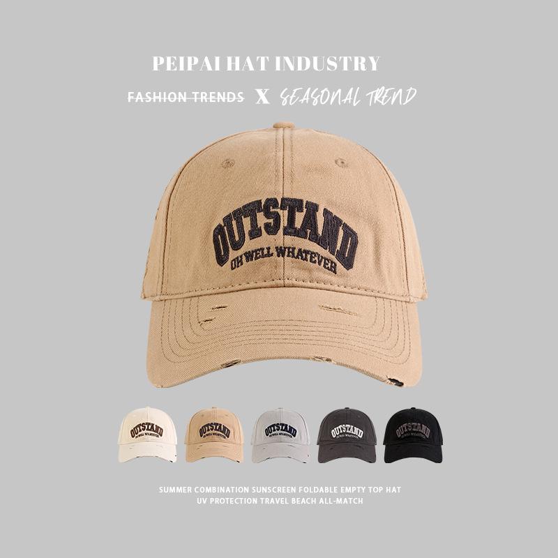 C4406 raw edge ripped out baseball cap khaki, C4406 raw edge hole out baseball cap beige, C4406 raw edge hole ...