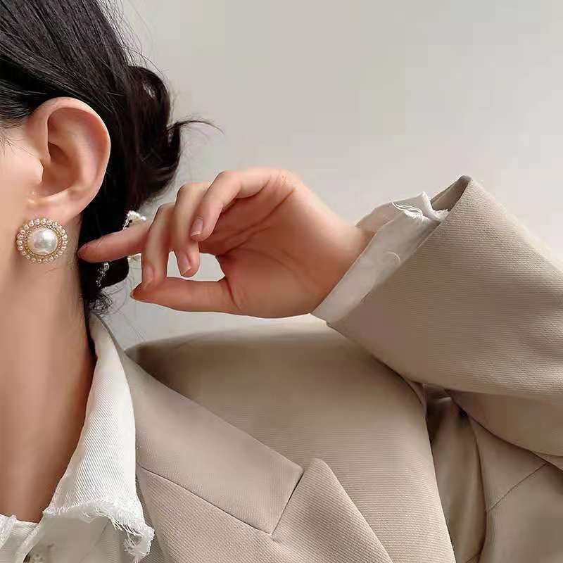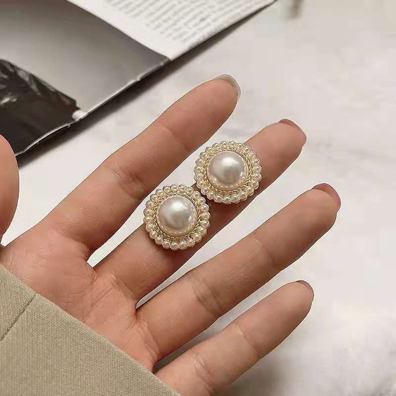 Pendientes de aguja plateada simples exagerados de perla grande nuevo estilo temperamento coreano pendientes de red roja viento frío joyería para la oreja