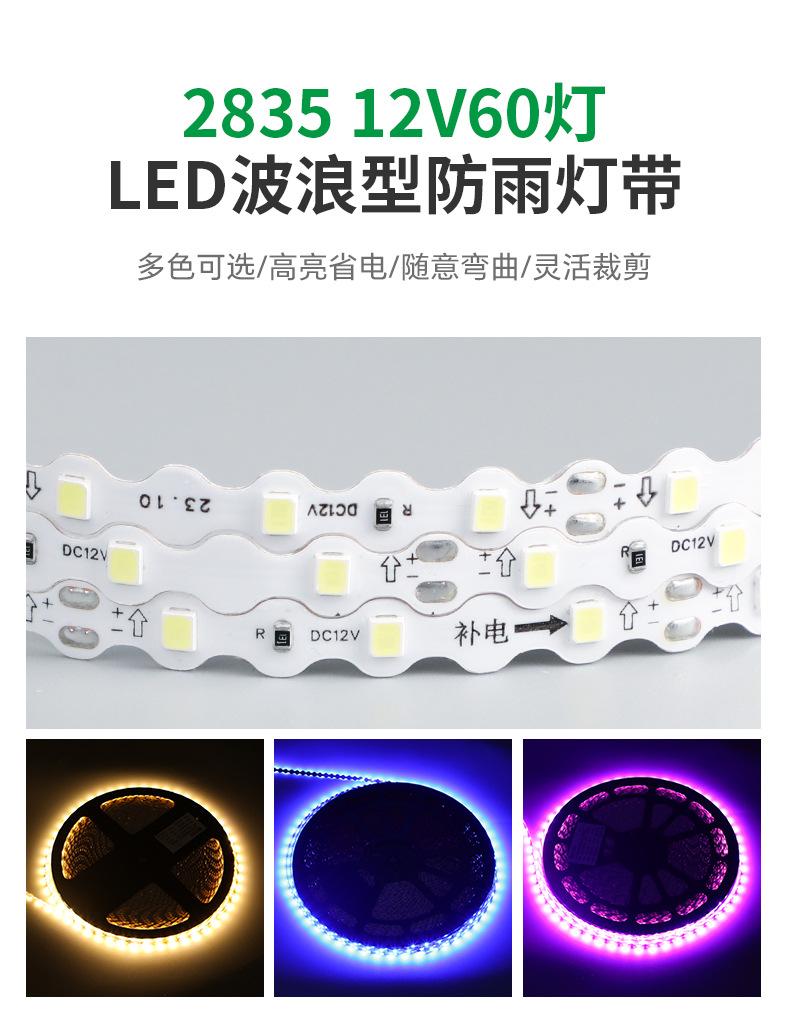 Tira de luz LED flexible 2835 a prueba de lluvia en forma de onda en stock 12V 60 luces para pared de fondo interior y exterior